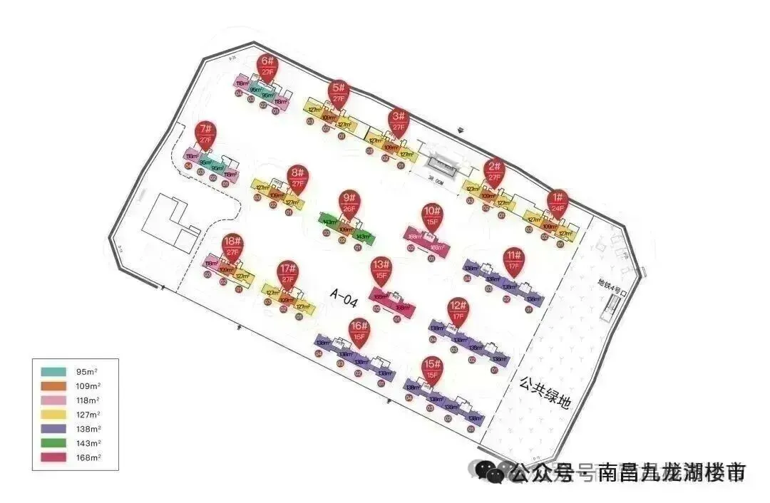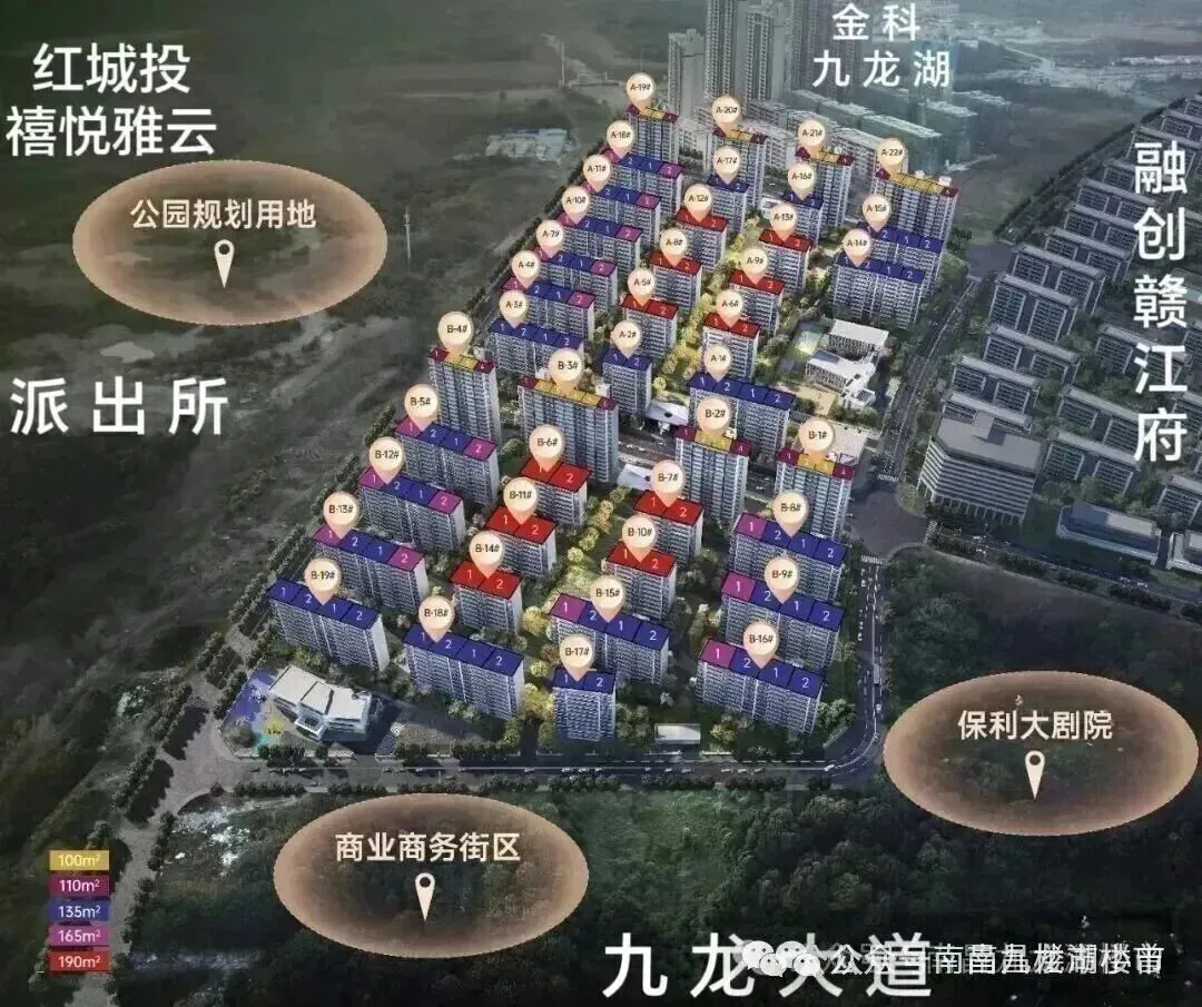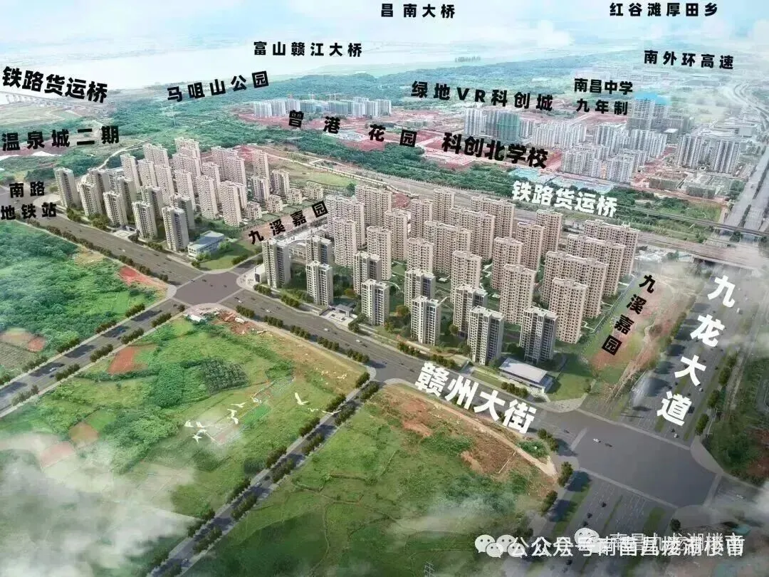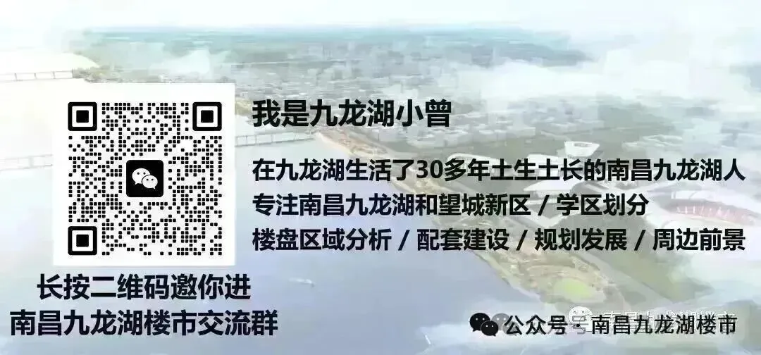 江山云著,距离南师附小九龙湖校区2.32公里,距离南昌外国语九龙湖初中1公里,距离南昌地铁四号线安丰站500米 ,位于赣江南大道以西,龙兴大街以北,城运路以东,南洲街以南,共7栋住宅和1栋超高层,总户数367户,容积率3.5,绿地率30%,第一太平戴维斯物业5元,2026年6月毛坯交房,机动车位1506个,其中地上停车位62个,面积约166平4/2/3-210平5/2/3-300平5/2/3-430平6/2/3-630平6/2/3左右,一梯一户设计,毛坯交付,小学读南师附小九龙湖校区和中学读南昌外国语学校九龙湖初中部。地铁景秀未来,距离南大附中科创学校2公里,距离地铁二号线南路站650米,位于赣州大道以南,九龙大道以东,三清山大道以西,九溪嘉园,其中西地块共计 1 0 栋 15-17层小高层住宅,东地块共计 9 栋15-17层小高层住宅,部分楼栋有架空层,一所 6 个班幼儿园,机动车位1097辆,地上109个,地下988个;非动车位560辆;容积率为1.54,建筑密度14.73%,绿地率35.01%,万科物业2.6元,面积有90平三室两厅一卫,115平三室两厅二卫,133平四室两厅二卫,总户数789户,读南大附属科创学校【2025年9月开学】。