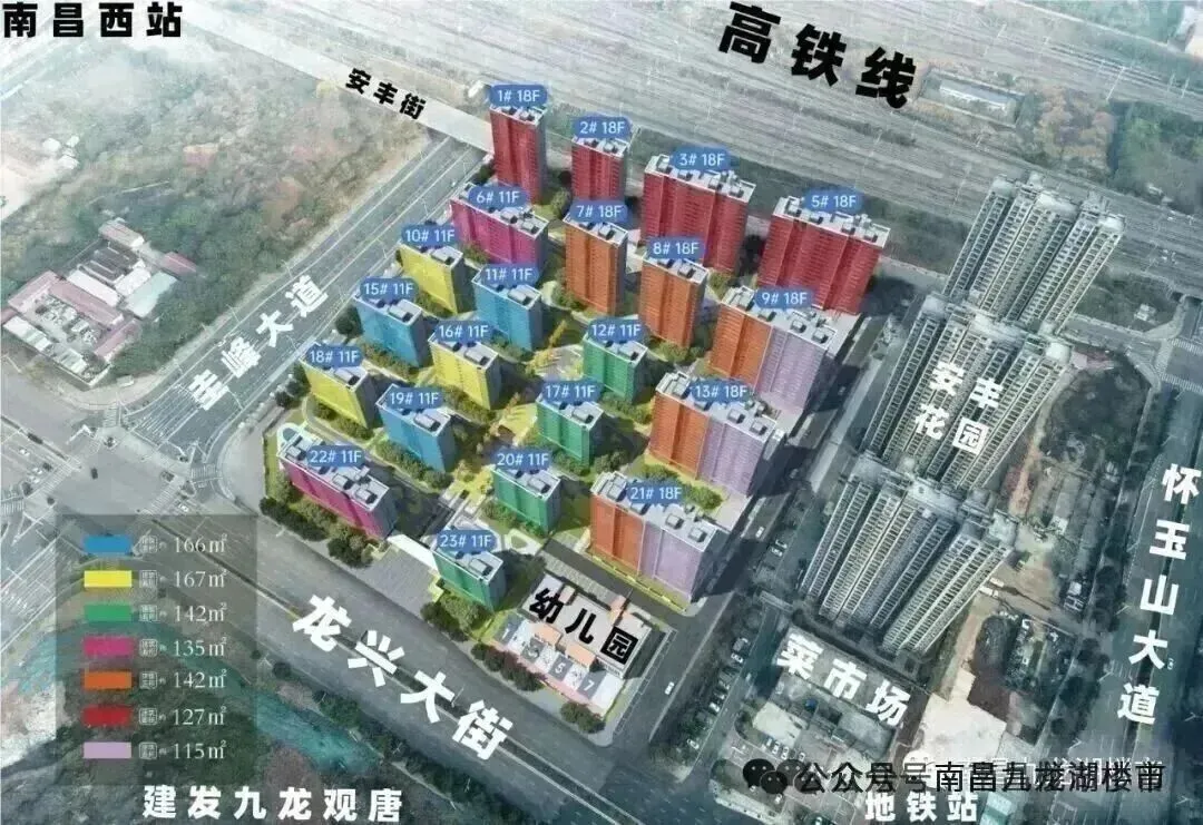 联发九龙和悦 距离南师附小石钟山路学校700米 ,距离地铁二号线和地铁四号线的西站南广场站1.55公里,位于龙虎山大道以西,丽源街以北,青原山路以北,共计602户,东侧地块6栋住宅,包含3栋洋房和3栋小高层 , 2025年12月毛坯交房,西侧地块7栋住宅,包含5栋1洋房、2栋小高层和一所12班幼儿园 ,容积率1.96,绿地率约35%,小高层108平3室两厅二卫和118平3+1平两厅二卫和洋房128平4室两厅二卫,138平四室两厅二卫,全部毛坯交付,联发物业3.5元,南师附小石钟山校区【2025年9月开学】。保利天珺 距离南昌育新九龙湖分校3公里【有校车】,地铁二号线九龙湖南站1.8公里,住宅共分为二期,位于九龙大道以西,南龙蟠街以南,其中一期为15栋洋房和4栋小高层精装已交房,其中二期共4栋小高层和18栋洋房部分已交房,共两所幼儿园一座邻里中心,总户数1732户,机动车位1967辆,容积率2.0 ,绿地率35% ,保利物业3.5元,小高层户型有100平和110平三室两厅二卫精装和毛坯,洋房户型有135平四室两厅二卫精装和毛坯和165平四室两厅三卫精装,和190平四室两厅三卫毛坯。