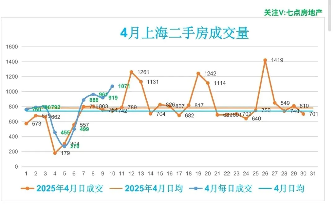 🏡昨日(4月10日,周五),上海二手房成交1071套,较前一日增加152套(增幅16.54%),成交面积87235.19m²,套均面积81.45m²。