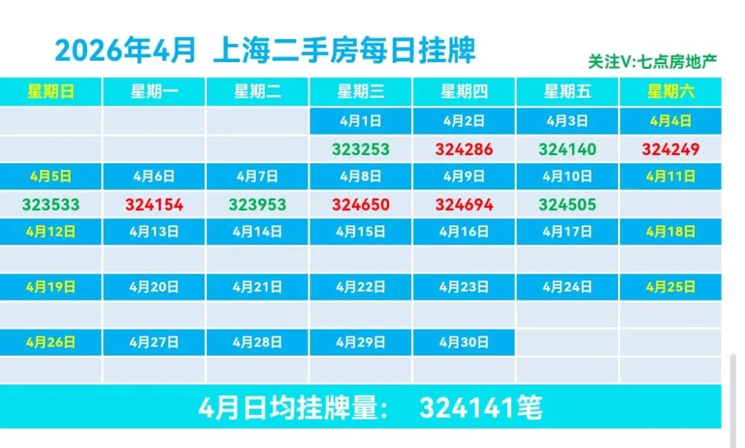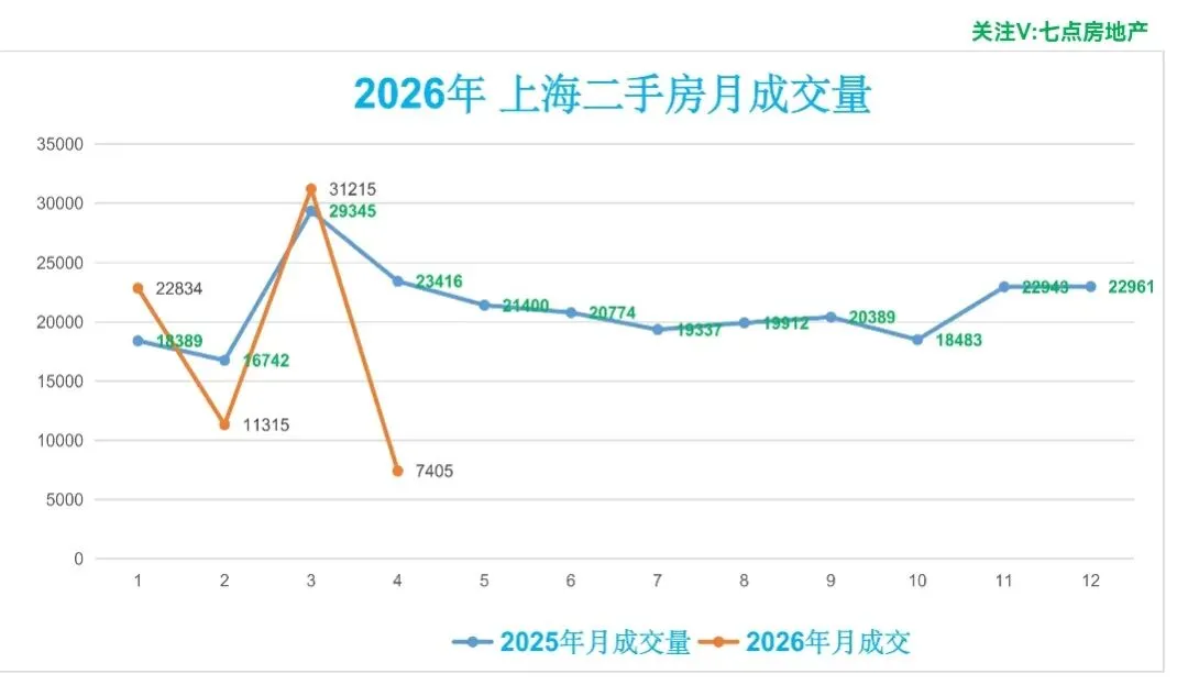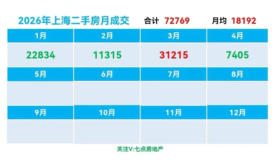 ♻️截止2026年4月10日,2026年上海二手房成交量合计72769套,月均21174套。