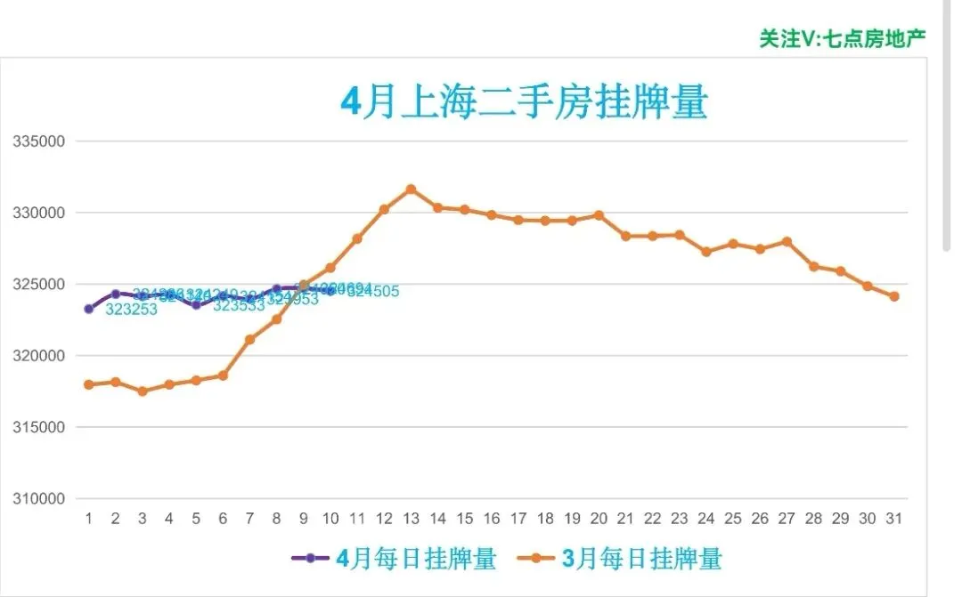 🏠昨日(4月10日,周五)挂牌324505笔,较前一日减少189笔,日均挂牌324141笔,约32.41万笔,挂牌与实际成交比438:1,去化周期约14.6个月。