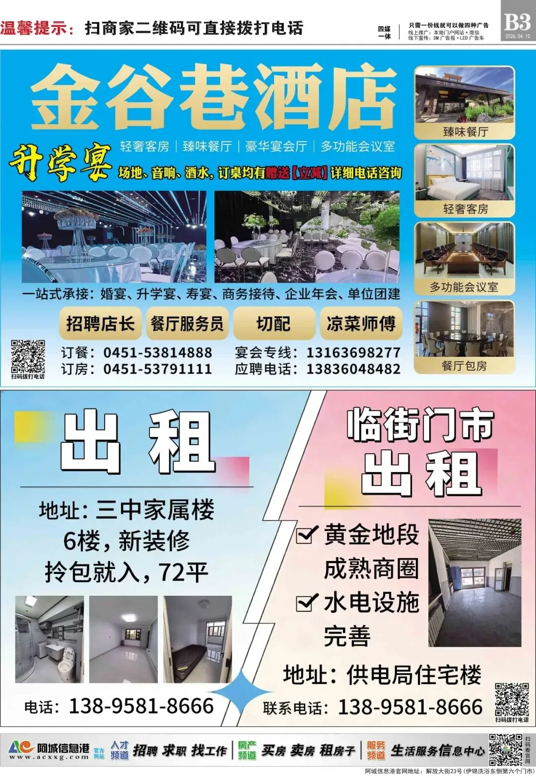 本次分类信息均来自阿城信息港官网,凡“收取服装费、押金、报名费等各种费用”或加qq/微信联系、无需任何条件、工作地点不限的均有欺诈嫌疑,请保持警惕。