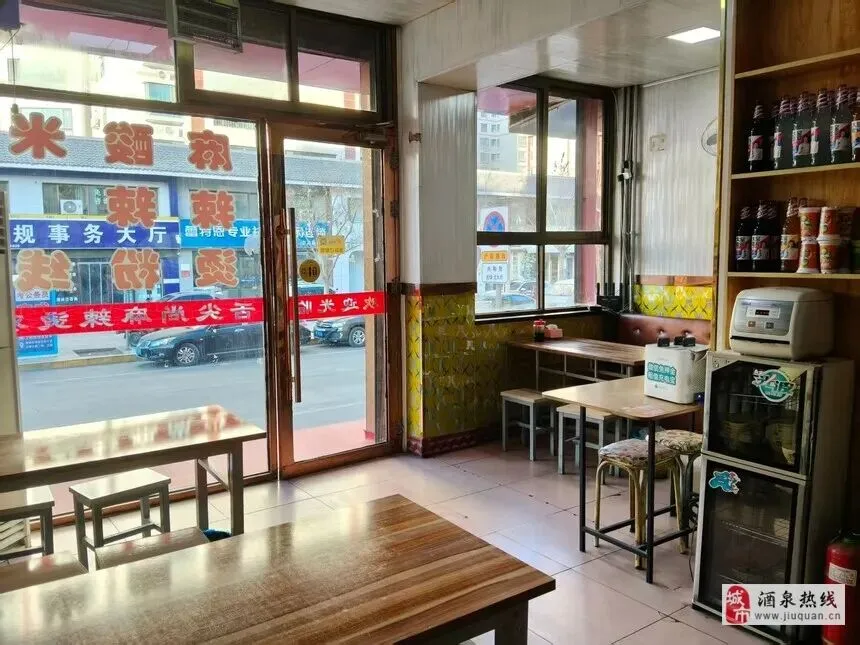 店铺详情:位于酒泉东方广场东北门对面小吃店对外转让。面积46平米,