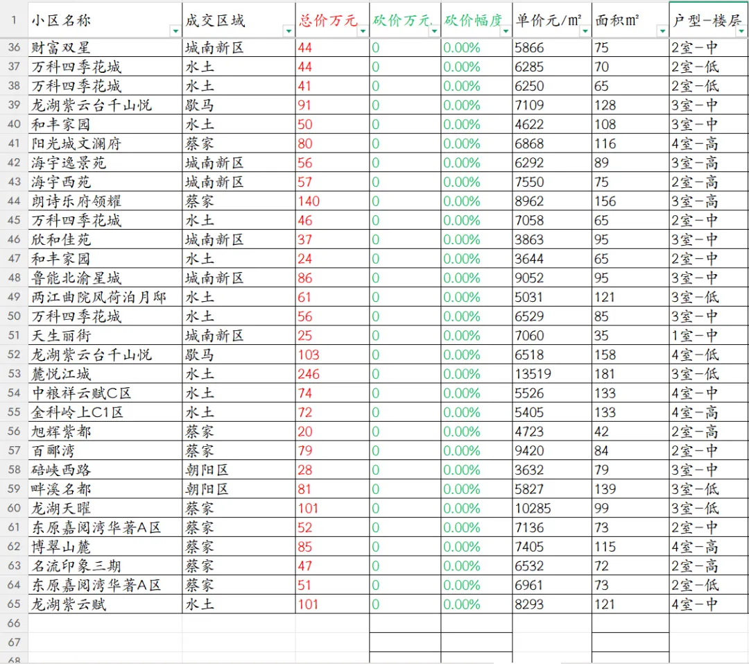 【重庆楼市深度观察】北碚区本次共统计65套房源成交信息,数据详情在最后。