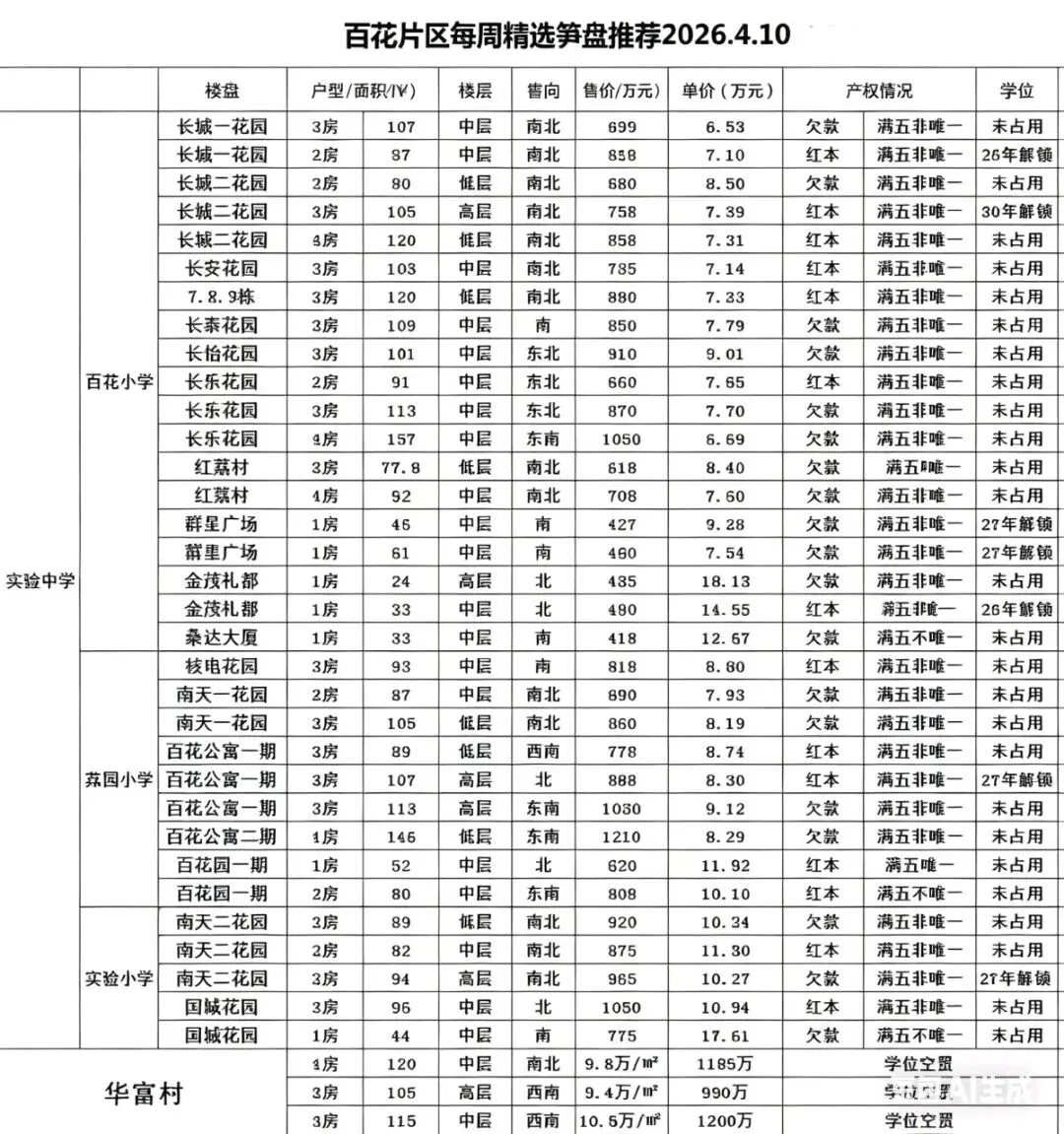 >2026年4月11日二手房成交及笋盘推荐,荔园/百花/实验小学/红岭中学/实验中学/园岭/华富学区房,仅供参考