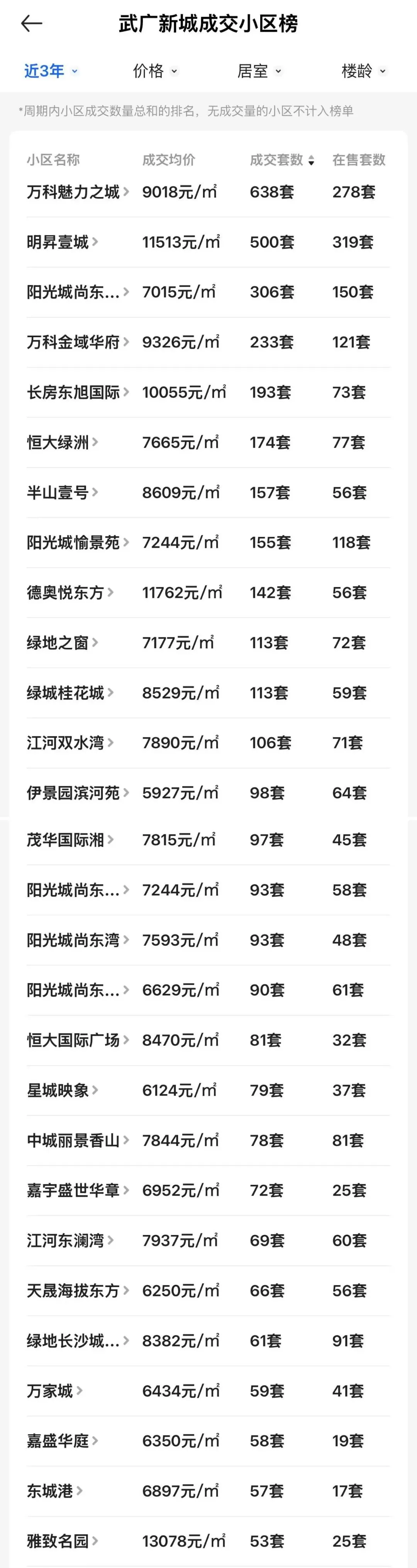 昨天我们分析了梅溪湖一期的二手房价数据(速看!梅溪湖一期各小区二手房价曝光!),今天我们来看下在贝壳上热度第二高的片区:武广新城。