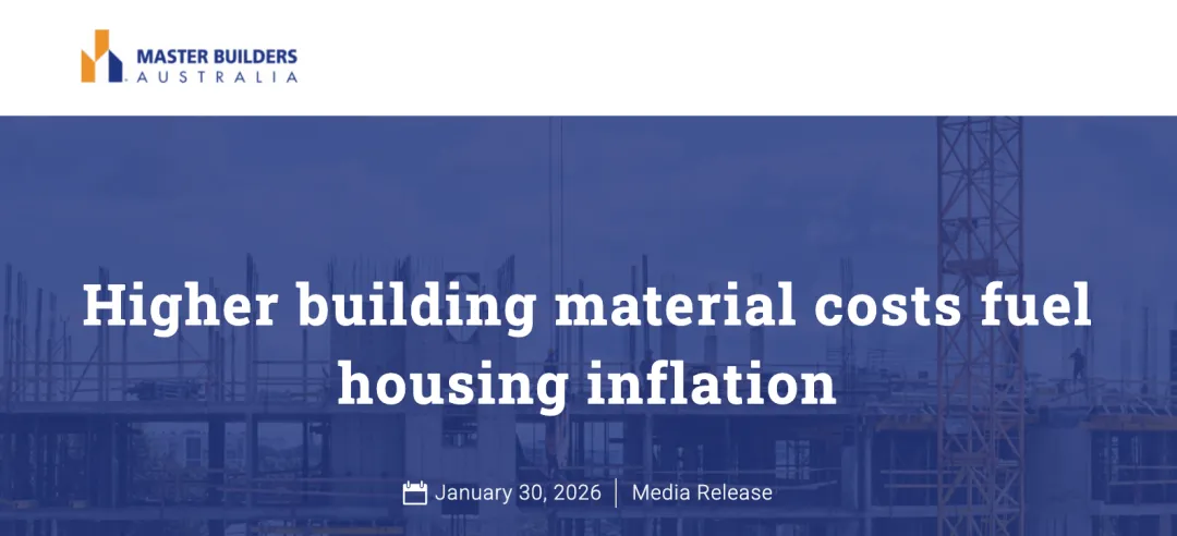 其实在这次油价冲击之前,建筑成本就已经涨了一大截了。ABS的数据——COVID以来住宅建材成本累计涨了接近38%。Master Builders(澳洲建筑师协会)的口径更高——把人工算进去,整体建房成本比疫情前贵了47%。这涨价速度比悉尼的房租还快。我有时候想,早知道当年应该去囤PVC管,可能比买房还赚。