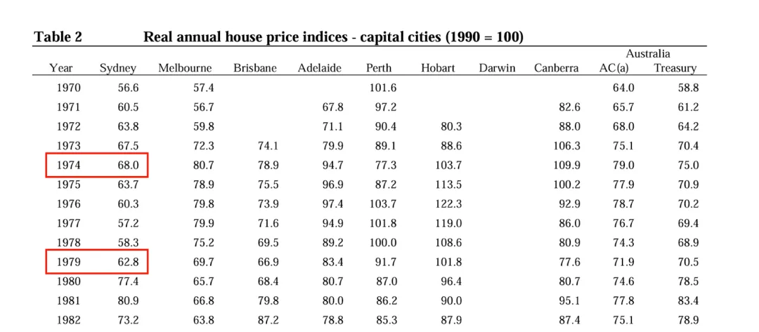 但这里有一层东西,很多人忽略了。麦考瑞大学(Macquarie University)两位学者Abelson和Chung的研究显示——1974到1979年间,悉尼房价的实际购买力指数从68.0跌到了62.8。什么意思?名义上你的房子确实在涨,账面上好看。但把通胀算进去呢?你的实际购买力,下降了大约8%。