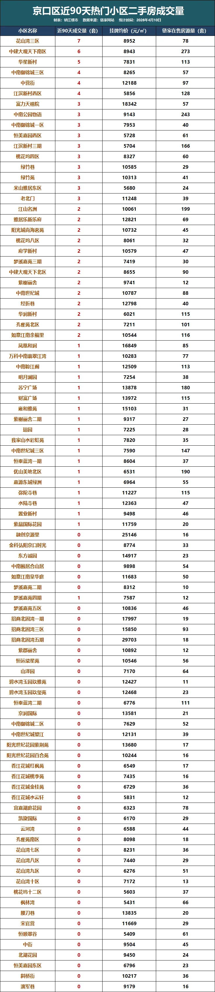 (注:本文数据截至2026.4.10,来源链家,不排除通过其它渠道成交未显示房源;数据手动整理,如有错误欢迎指出~)