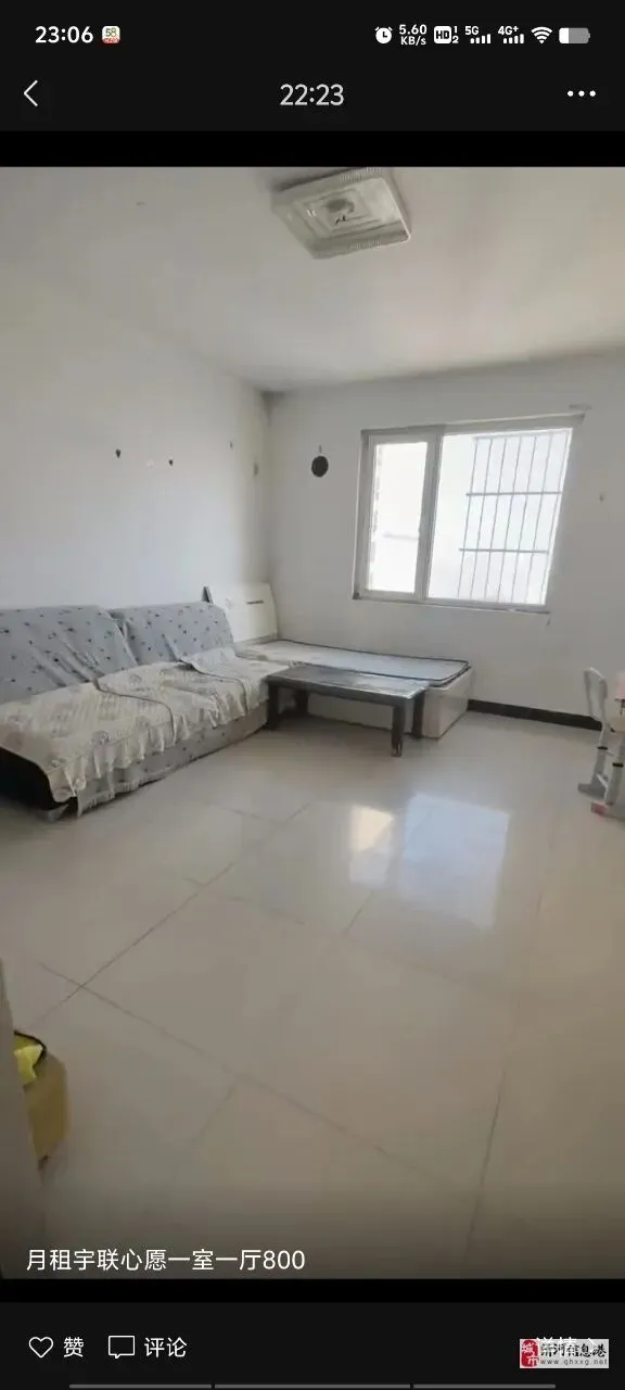 房屋详情:出租宇联馨苑一室一厅家具家电齐全拎包入住月租800
