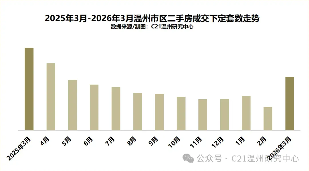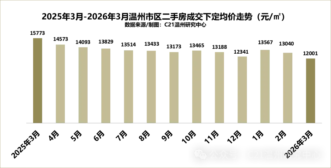 2026年3月,温州市区二手房整体成交均价为12001元/㎡,环比下降7.96%。