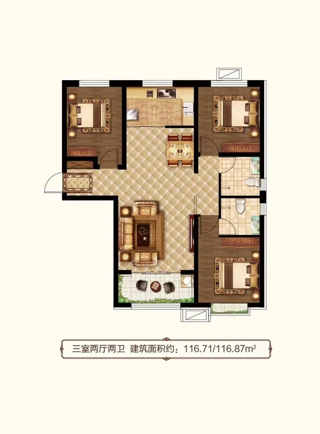 房屋详情:出售凤凰城二期123平,毛坯房好楼层,三室两厅两卫,带小房,全款包更名,咨询15633063324
