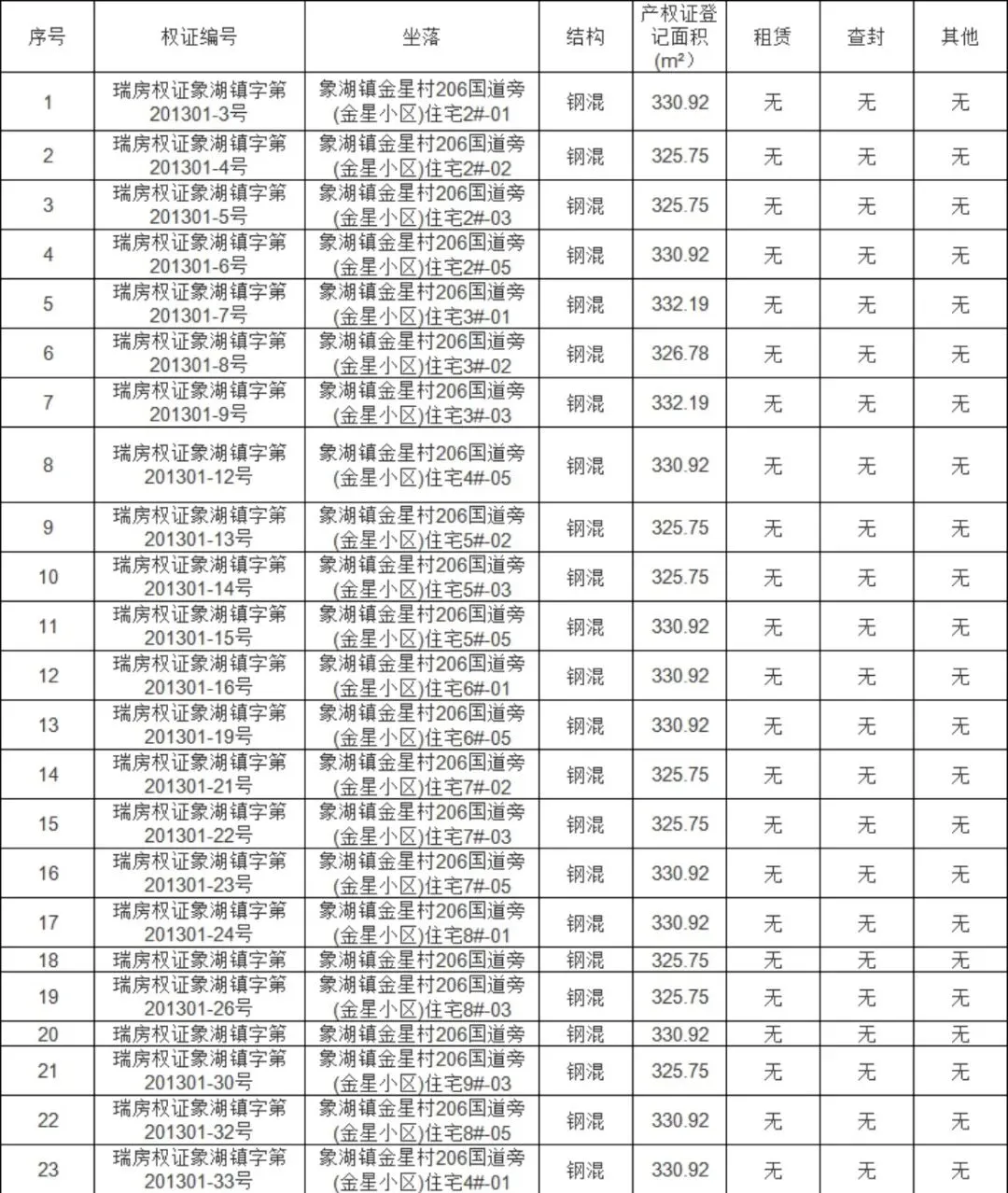 1.房产的实际面积以权证登记数字为准,拍卖人对拍卖标的物的外观、质量问题、结构调整、固定装修损坏、房产面积差异等不作担保,由买受人自行承担相关责任,以实际交付时外观、质量、结构、装修以及房产面积等情况为准,由此产生的问题亦不影响拍卖成交结果及成交价格。