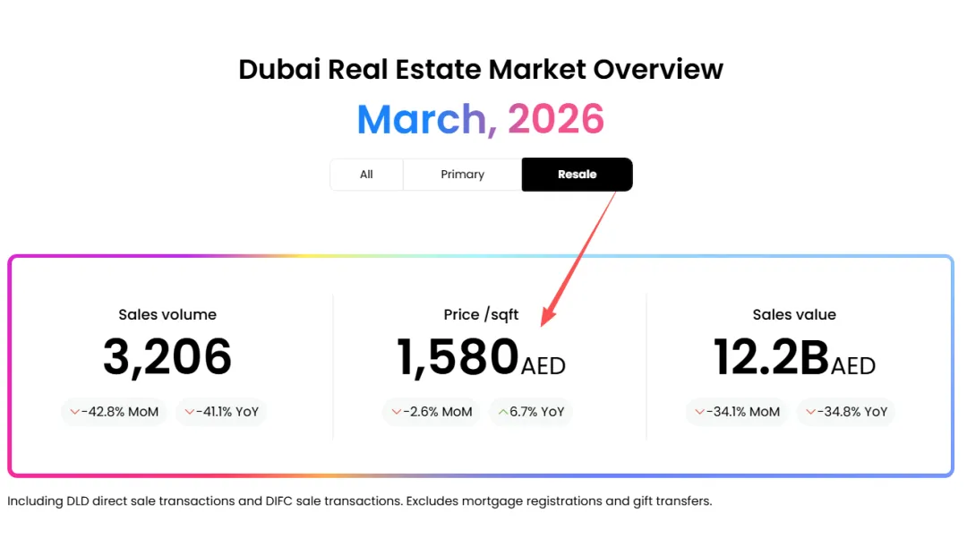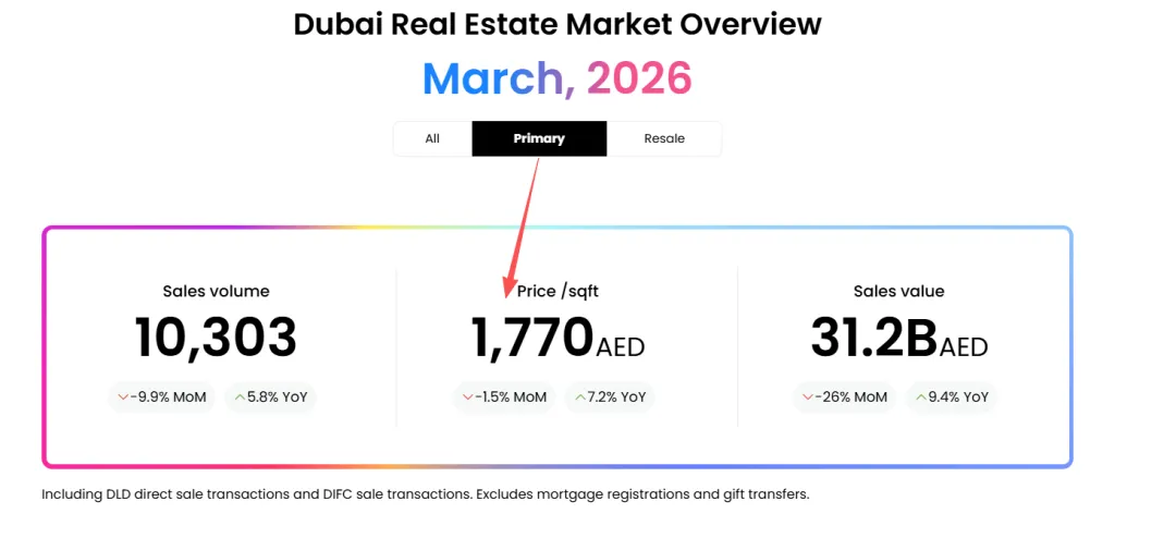 我看了一下冲突以来3月份的价格, 二手房均价大概在1580迪/平方英尺, 而期房在1770迪/平方英尺, 在市场开始出现分歧的时候,价格更低、确定性更高的二手房,自然更容易被认为是抄底首选。