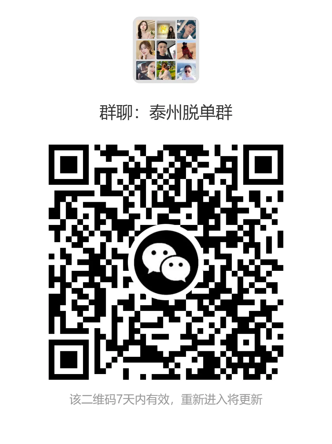 扫描下方二维码加入泰州本地相亲交友群,填写个人信息后,专业的泰州红娘老师会电话联系你,根据你的条件和需求,为你匹配最合适的对象!