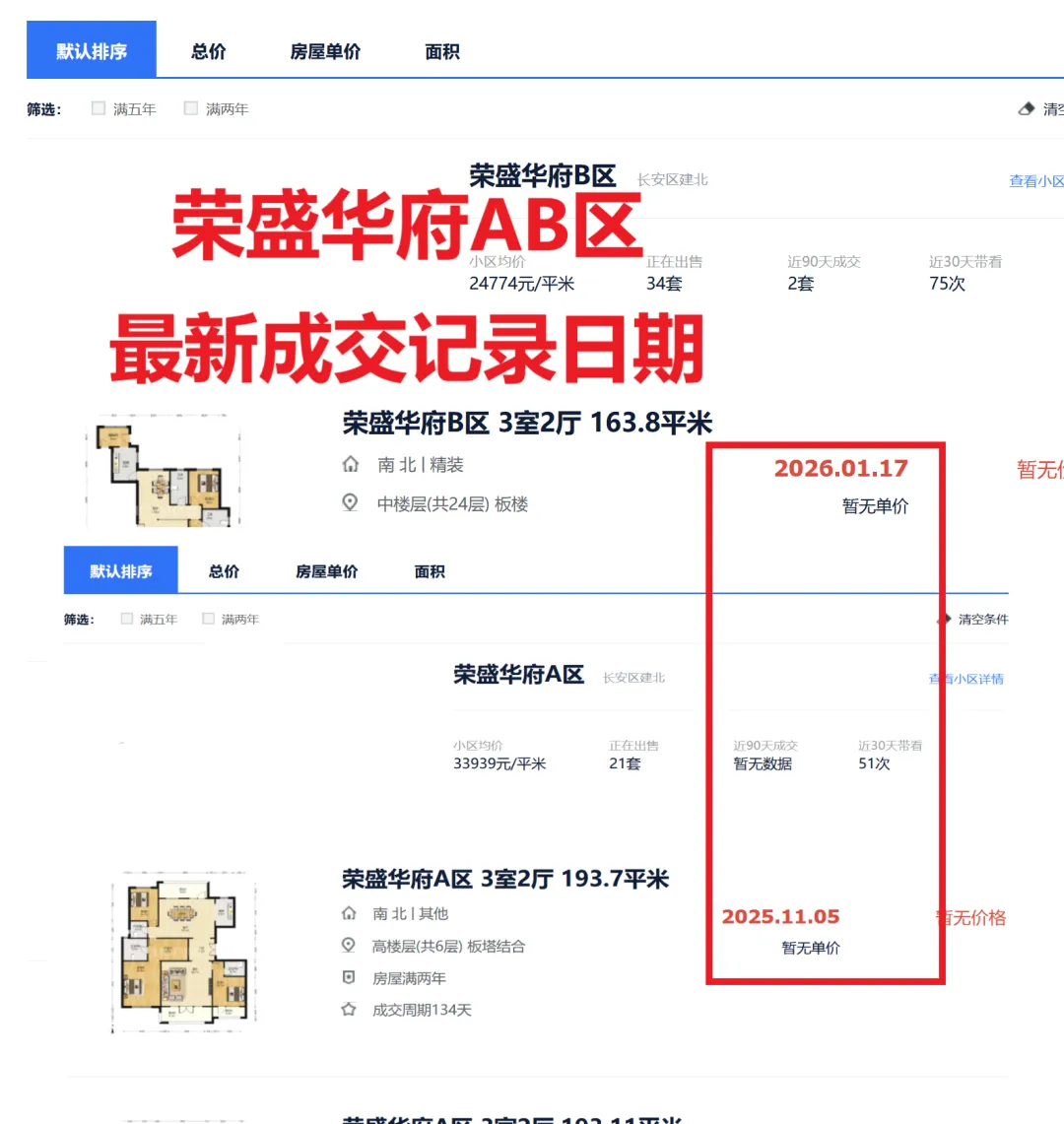 但成交量这么高的三月却看不到几个云锦和荣盛华府的二手房成交数据,