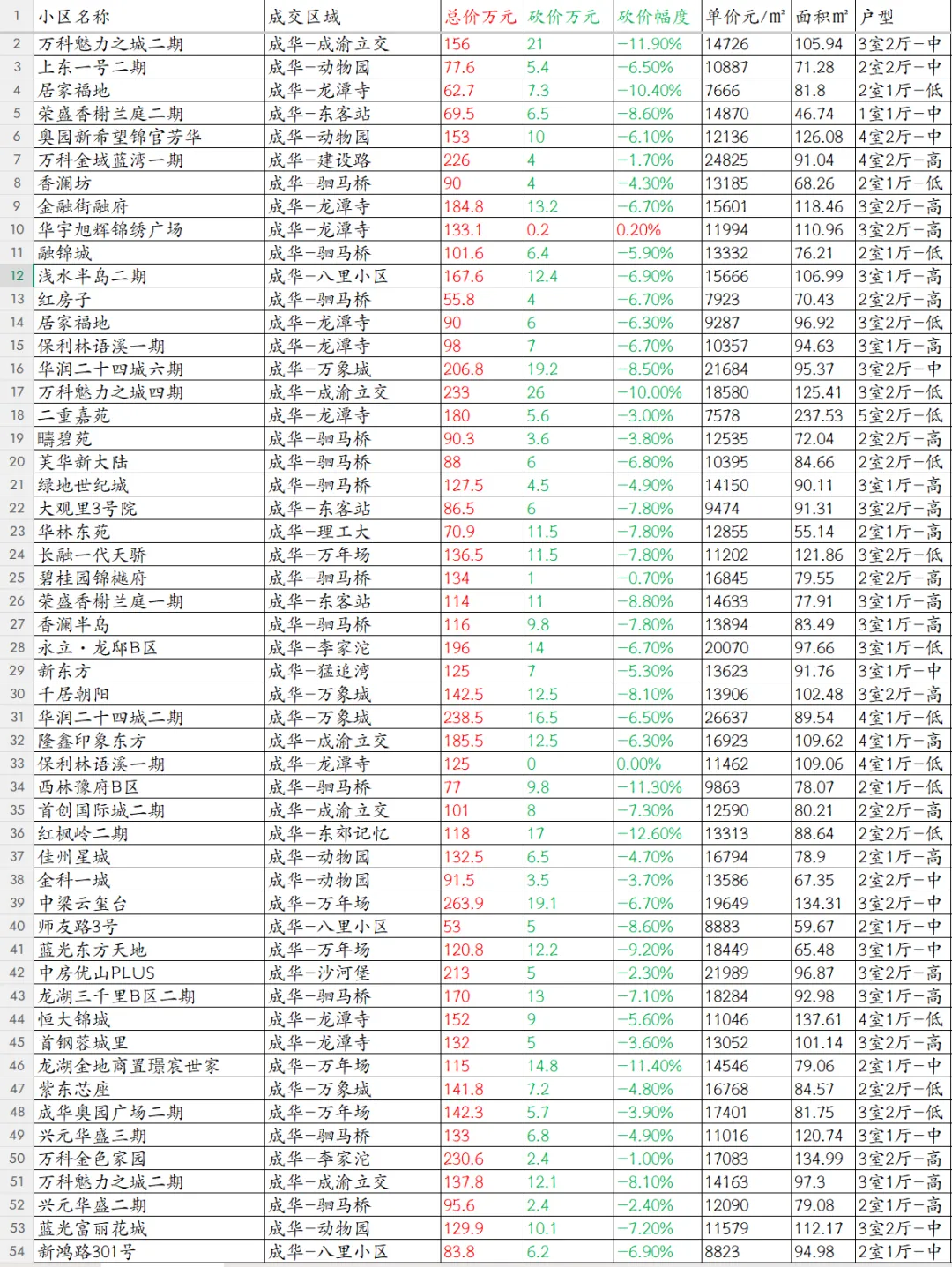 >成都成华区164套二手房成交!最高单价超2.3万,刚需捡漏机会来了?[20260412期]