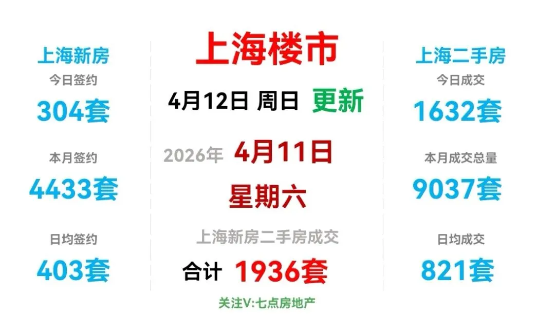 昨日(4月11日,周六),上海新房和上海二手房成交量合计1936套。