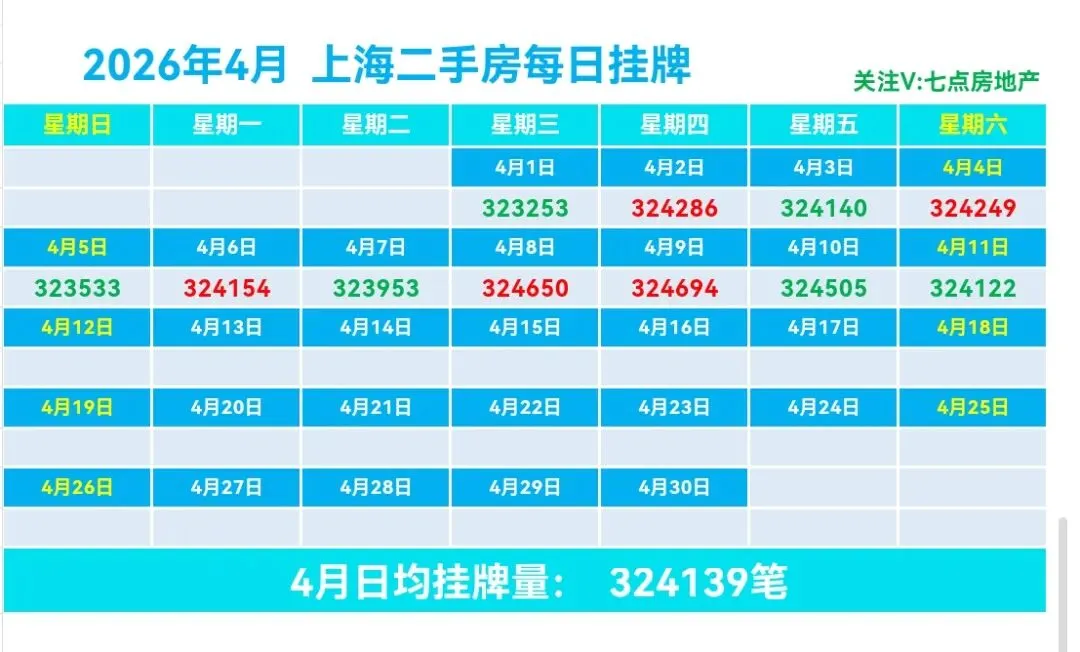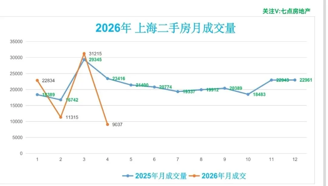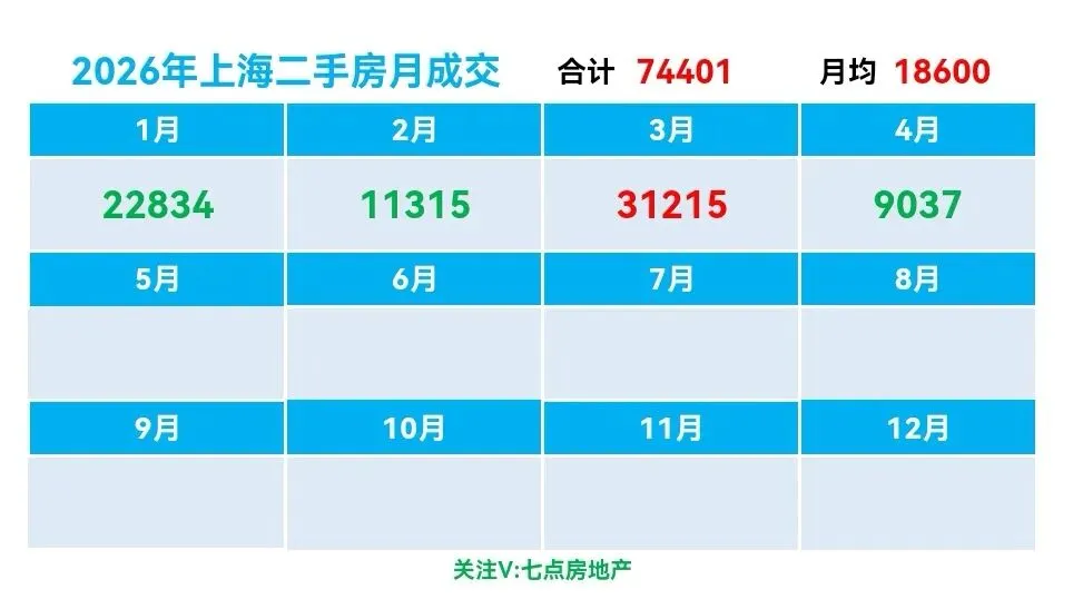 ♻️截止2026年4月11日,2026年上海二手房成交量合计74401套,月均21174套。
