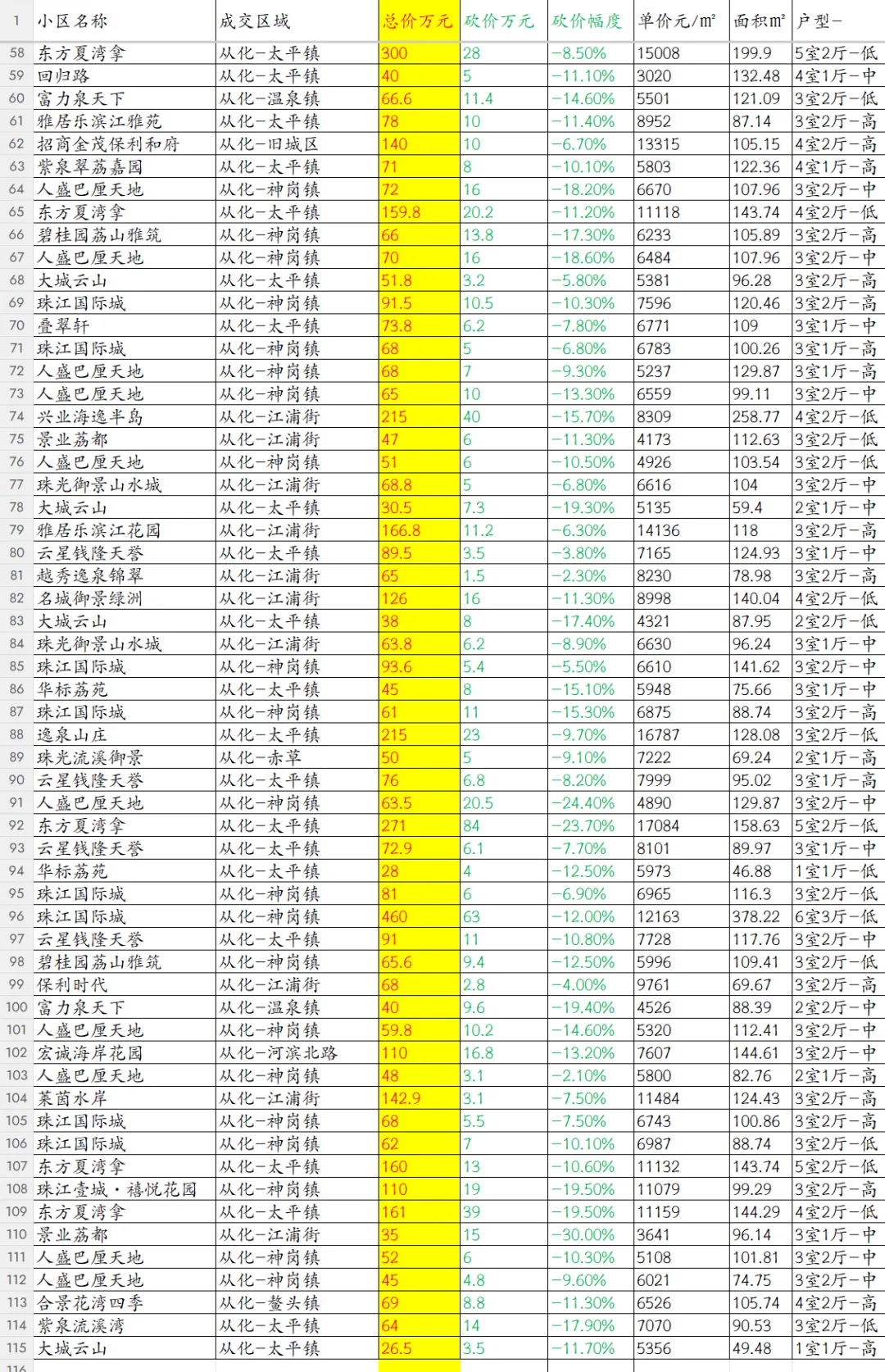 【广州楼市深度观察】从化本次数据共覆盖115套成交房源,成交数据详情在最后。