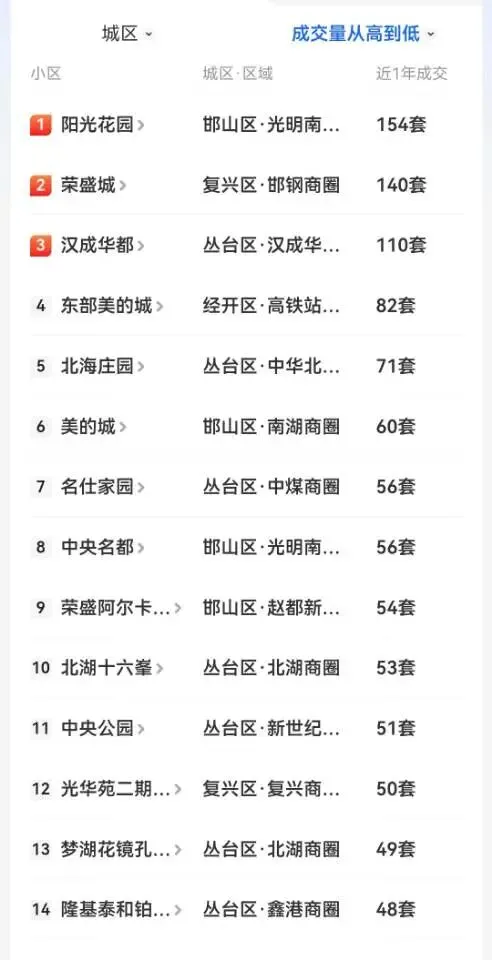 从邯郸二手房近一年成交量来看,成交排行榜基本可以看到:体量较大社区,挂牌房源多内部竞争降价多,对于买方有价格谈判优势,成交量在挂牌量的30%-40%之间。