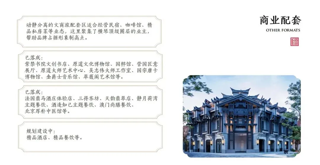 分两期开发:一期为136套四合院,二期5栋7-13层小高层,涵盖LUX丽世精品酒店(与安曼、悦榕庄同一梯队的国际顶级小众精品酒店品牌)、艺术展览中心、米其林餐厅等。