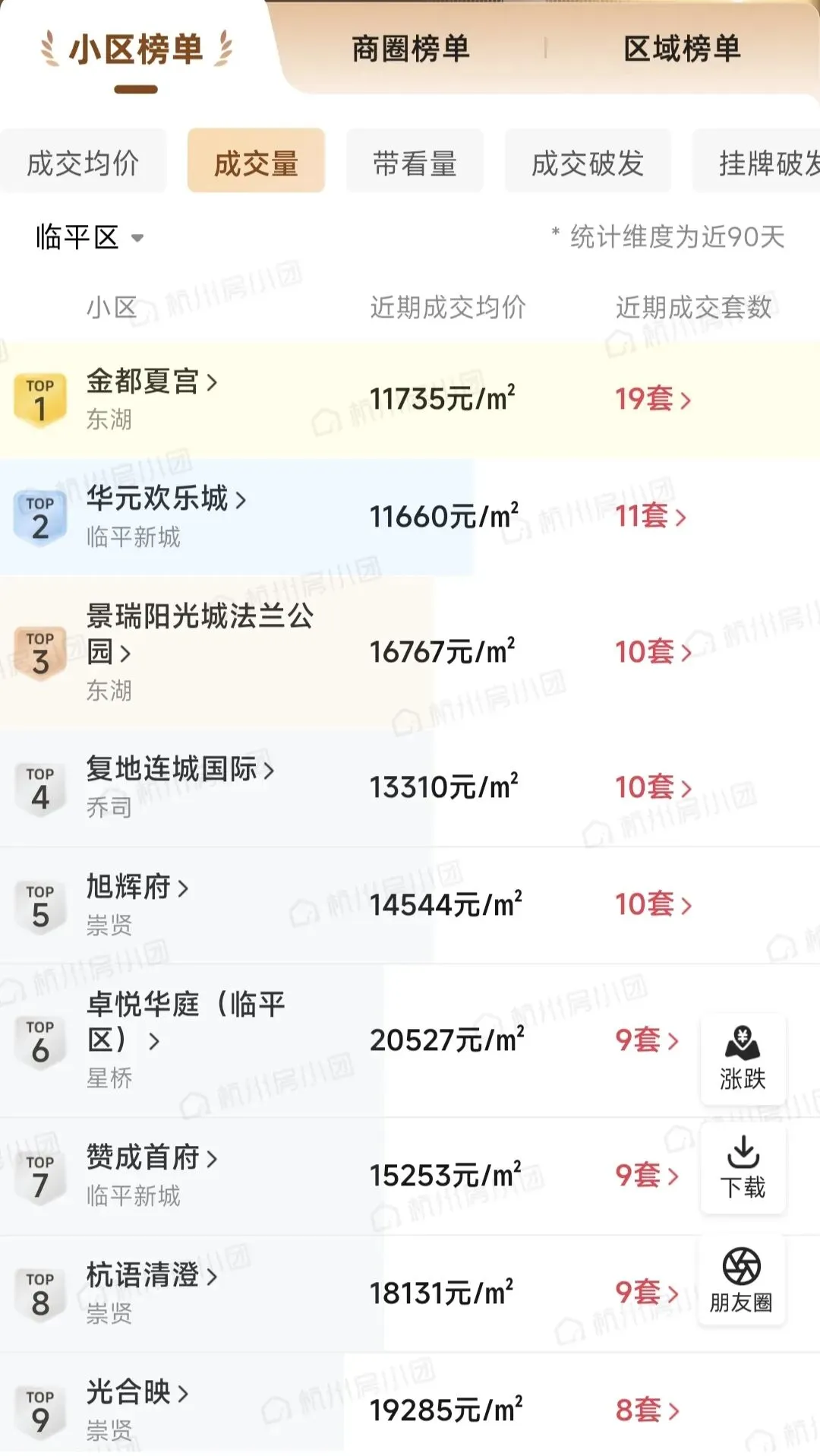关于想了解价格的朋友,可以看看成交均价曲线图和商圈涨跌幅。 上月房产市场数据来说话,有想详细咨询小区均价的朋友可以私信我。我是从事房产行业多年的本地人,对临平小区知根知底。希望能帮近期买房的朋友少走弯路,临平买好房,蔡姐来帮忙!