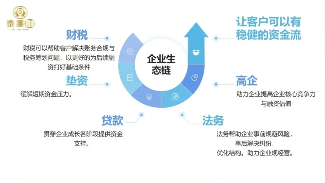 我公司“1+4“模式,其他”4“都是围绕融资”1“来服务的,公司月均放款2个亿。泰惠融为您建立专业高效的资金蓄水池。