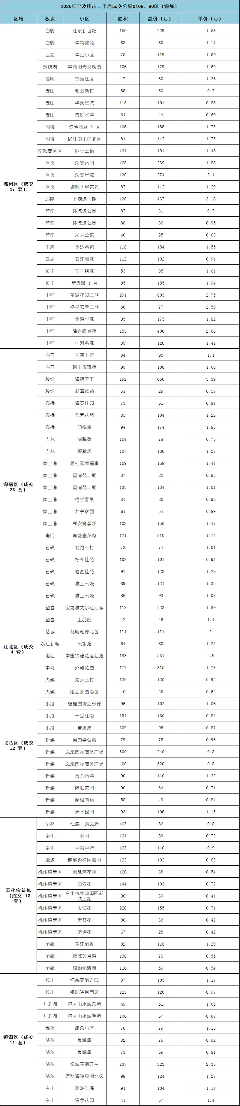 >2026年宁波楼市二手房成交分享0408,90单(海鲜)