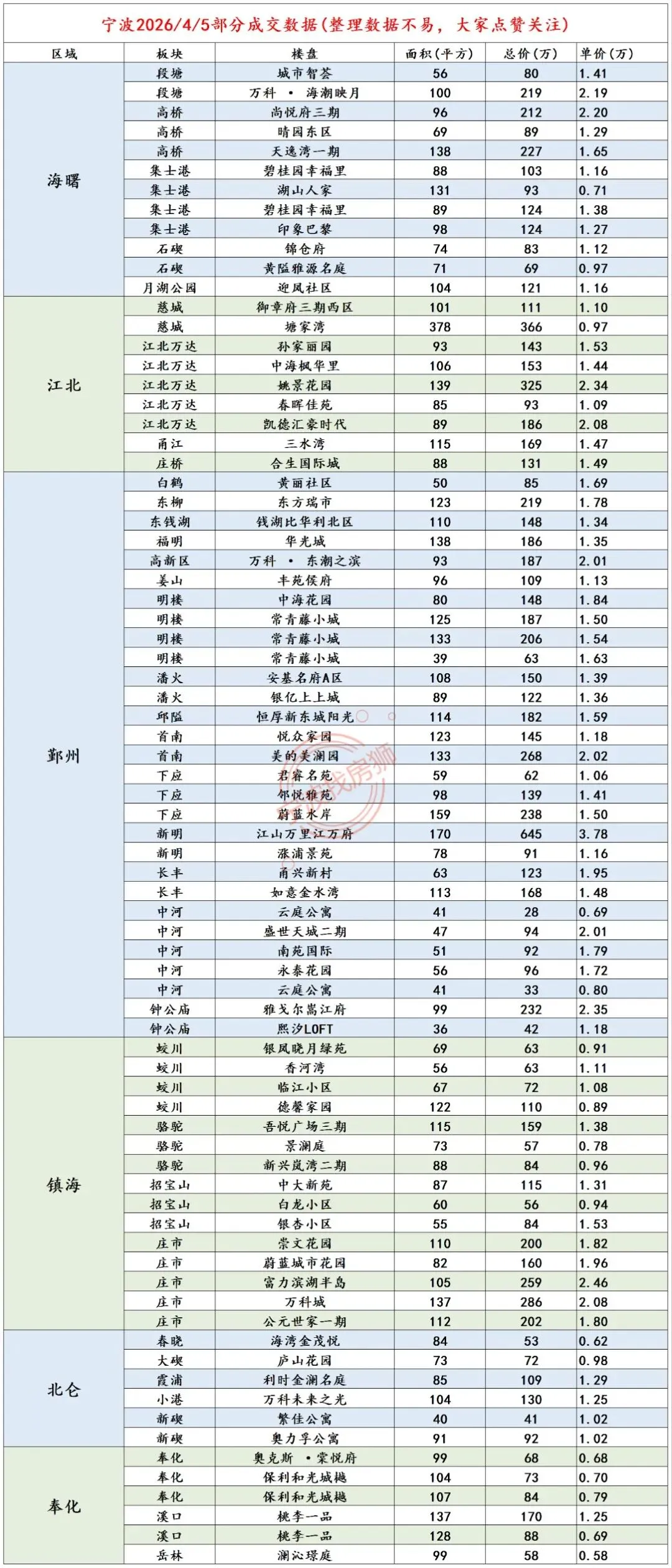 >4月5日宁波二手房成交价格