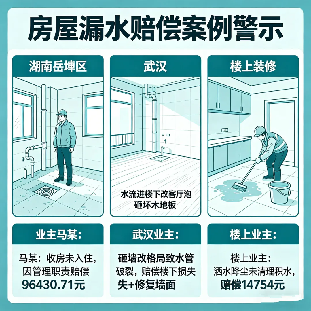 翻译成人话就是:不管你是不是故意的,只要你家水流到别人家造成损失,你就得赔。而且你没法甩锅给开发商——湖南那个案例里,业主想甩锅说“是开发商装的水龙头质量问题”,法院确实认定了开发商有80%的责任,但剩下的20%还是得你自己掏。