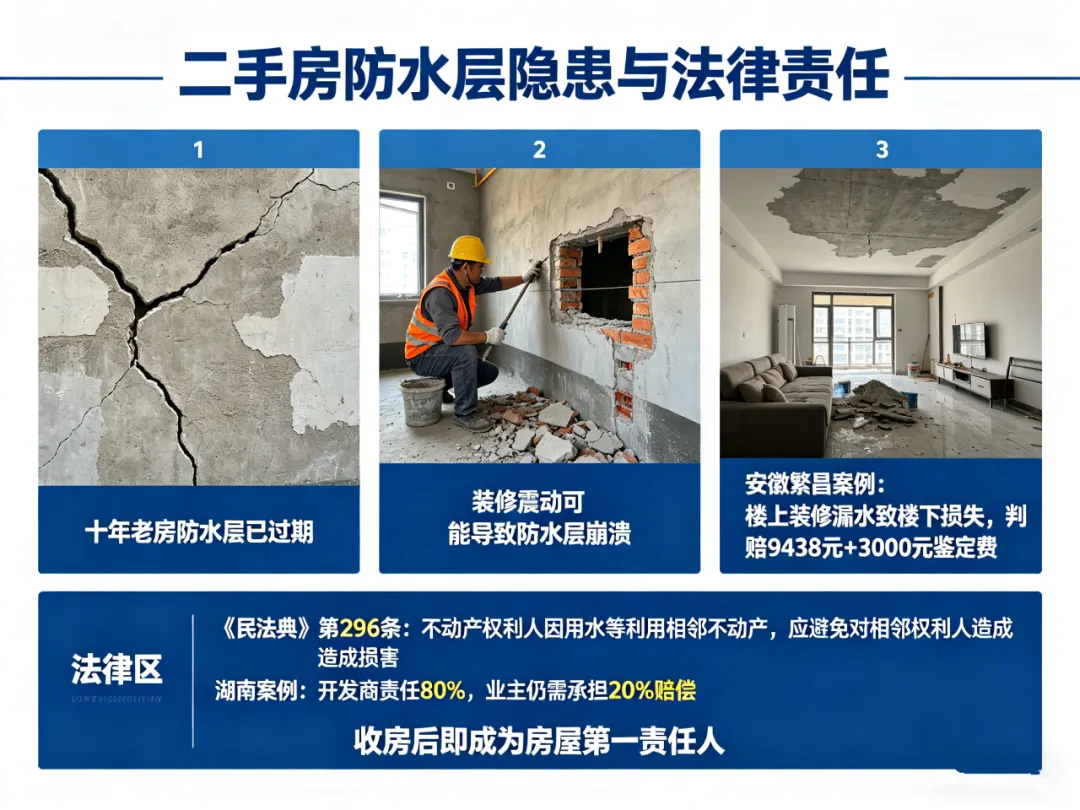 你刚拿到二手房钥匙,满脑子都是敲墙改格局,结果第三天就被楼下邻居堵在门口:“你家漏水把我天花板泡了,赔钱!”