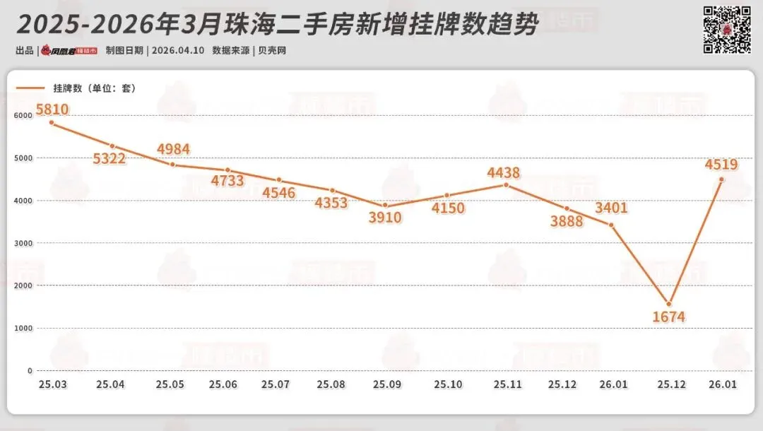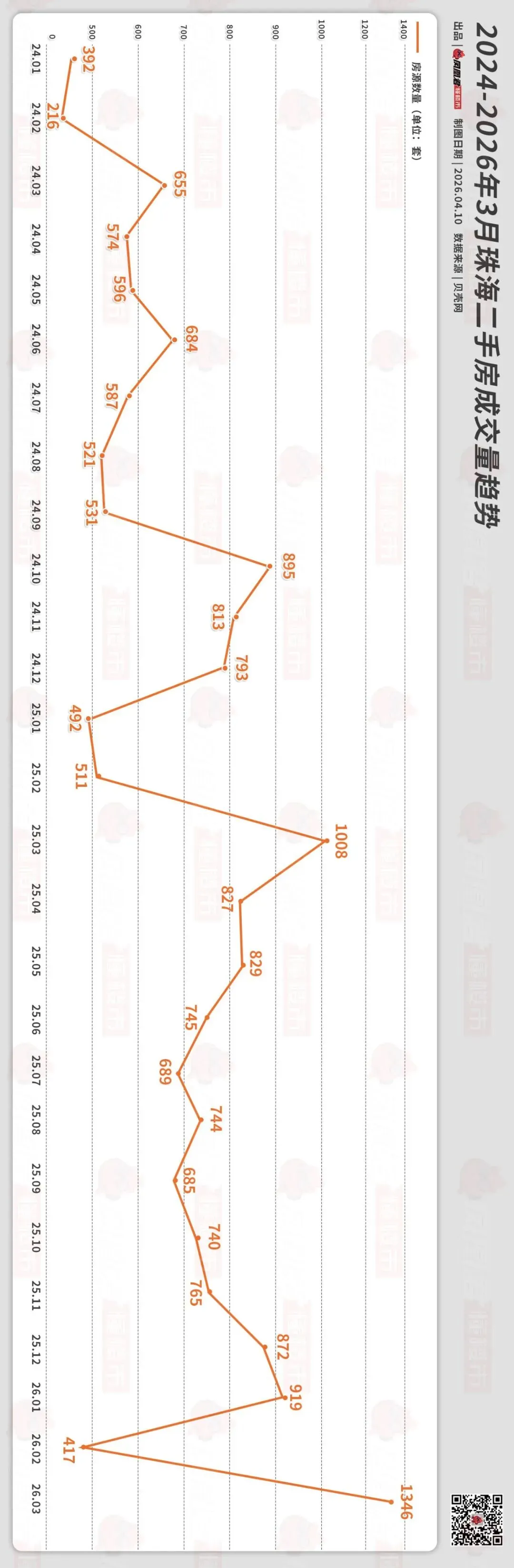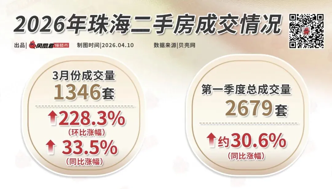 凤凰君在统计二手房数据时,发现2026年3月份,珠海二手房成交量环比上涨228%,达1346套,创下近5年珠海二手房成交量新高。