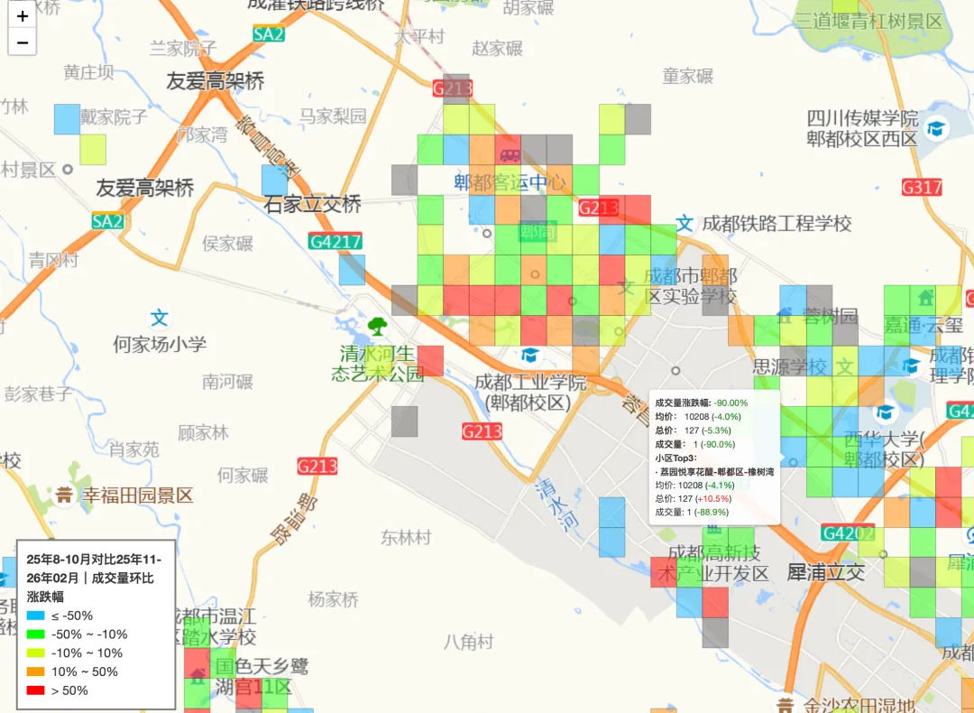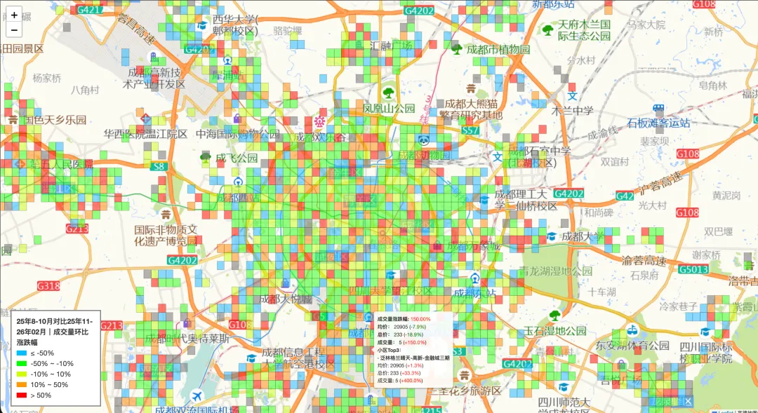 这次最直观的感受。不是全成都都一样。有些板块成交还在,有些板块已经掉得很明显了。差距比去年 8 到 10 月那阵更大。至于后面为什么会这样,等 3 月数据接上,再单独说。