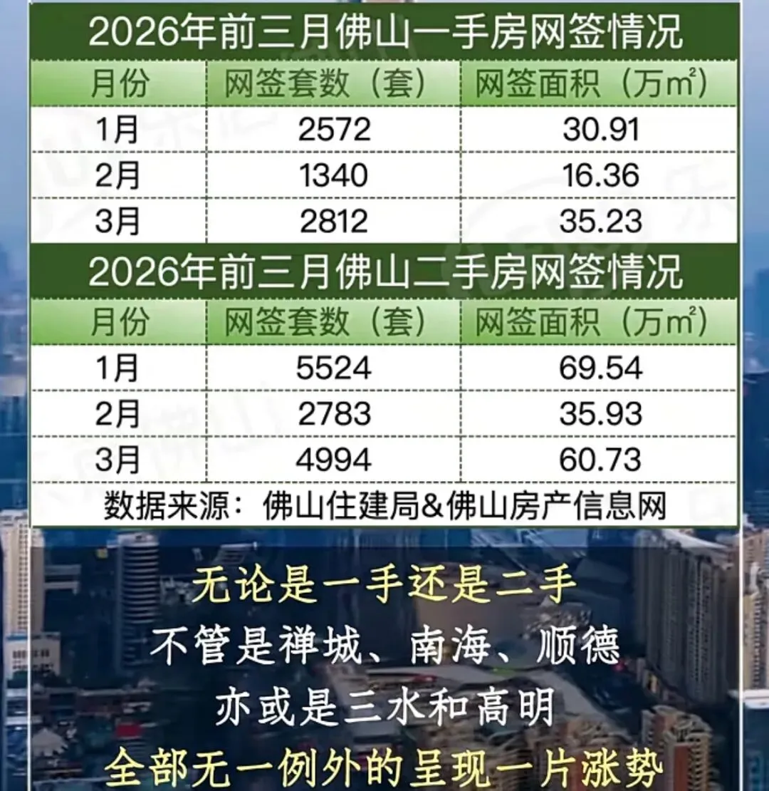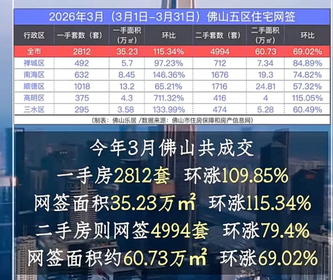 数据说话:3月佛山新房卖了2812套,环比暴涨118.7%,直接翻倍;二手房更猛,成交4994套,环比涨了88.1%。算下来,二手房占了全市近六成的份额。