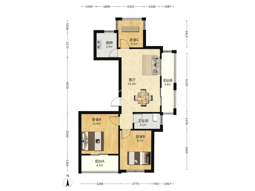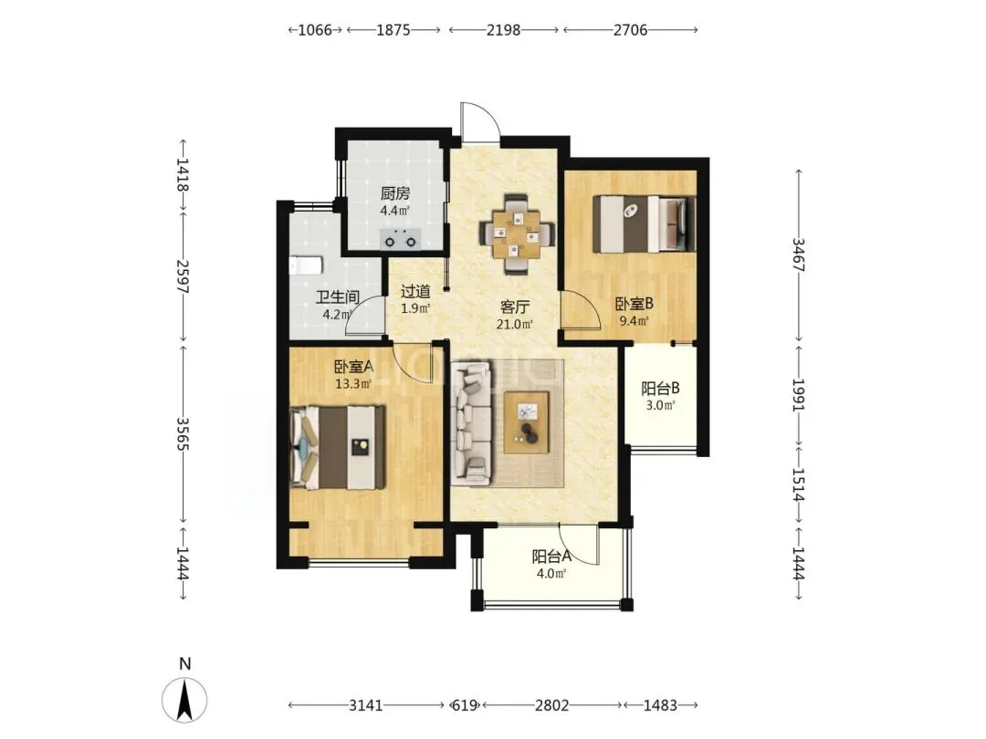阳光绿色雅苑 83.17方 178万(可以谈) 三室两厅