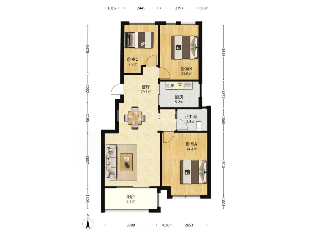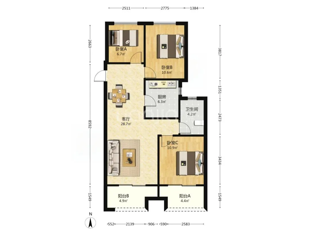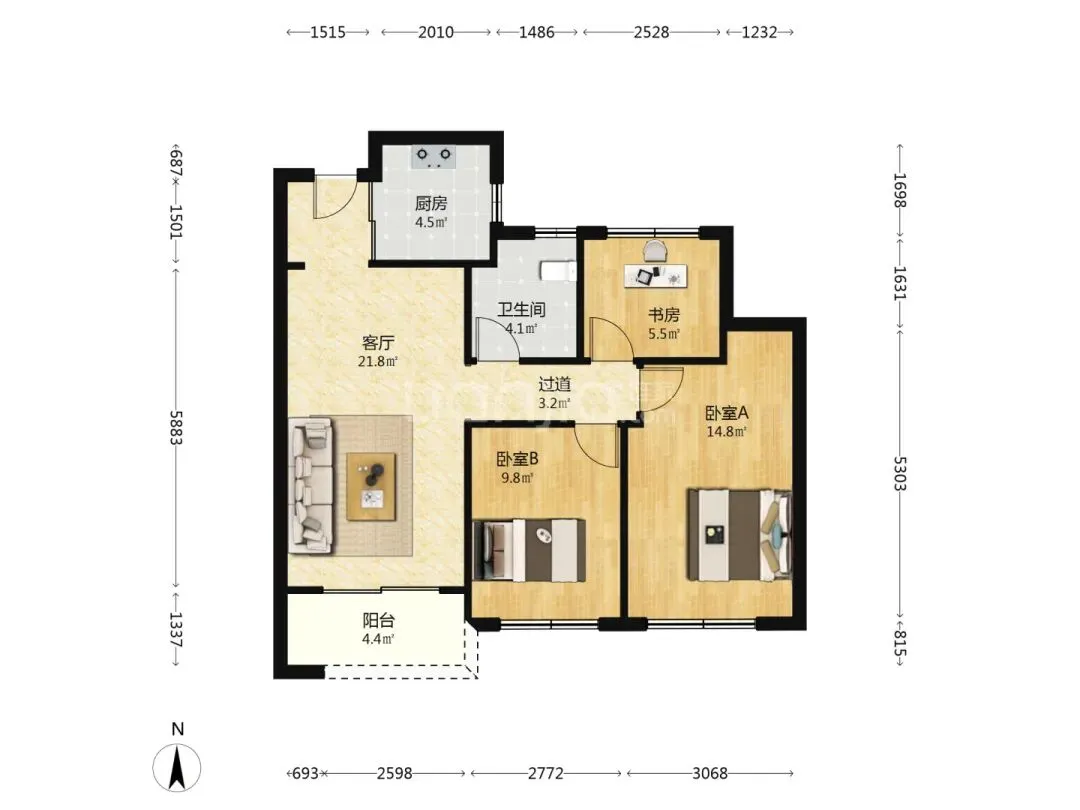 金地艺境东区 88.29方 168万(可以谈)三室两厅