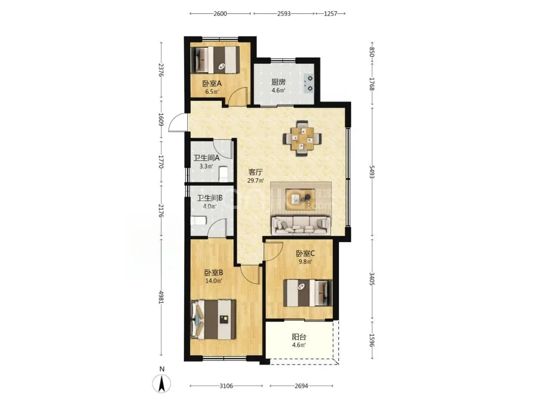 阅湖之宸 96.18方 259万(可以谈) 三室两厅