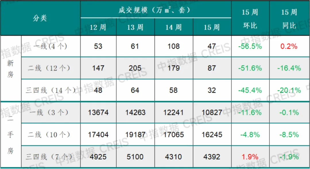 数据来源:中指数据CREIS(点击查看)表:各线城市新房、二手房近4周成交情况