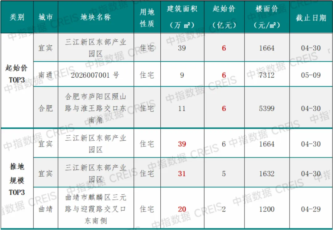 15周(04.05-04.11)300城推出62宗住宅用地,其中温州推出3宗住宅用地,起始价超8亿元,沧州推出8宗住宅用地,规划建筑面积近43万平。