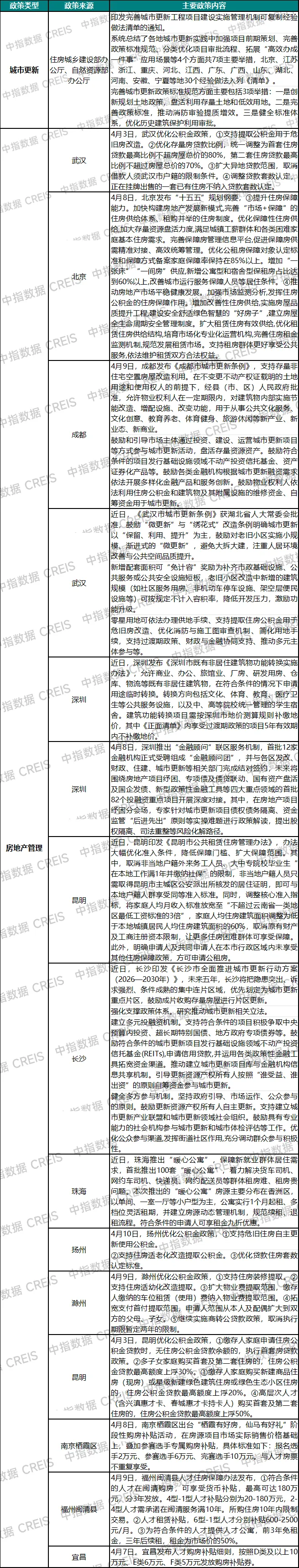 表:4月5日至4月11日房地产市场重点政策及事件汇总