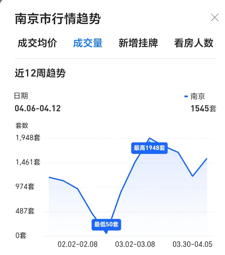 当然,除了关注江核板块,也要看一下全南京的整体趋势,虽然江核这两周的成交量不高,但是全南京的整体成交量还是不错的,上周贝壳南京的成交量是1545套,相较于前一周是明显有所恢复的。