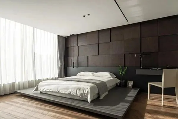 步履不停,来到了卧室空间。在推门进入的那顷刻间,我们无一不被它的宽敞与明朗所折服了。这间卧室的空间十分大,而设计师Felix在这间卧室里,将现代简约的气息一脉相承。在深色的木质方块的床头墙,与一张大方雅致的床,和一处简练的书桌,就这样,寥寥数笔之间,描摹出了卧室的简致与素雅感。当微风轻轻拂过,水波不兴,空间里的一切仿佛都刚柔并济了。回到这间温情的卧室里,Alan就如同回归了本心,远离了城市喧嚣,与自己的内心来一场安静祥和的对话。这间卧室,如同是一场高级的礼遇,让人倍感舒怡了。在阅家无数的设计师Felix看来,这间卧室,一定能经得住时间的考验,它悄然宣告了家的雅致感,也续写了家的现代简约的气韵,让人徜徉在温存之中了。