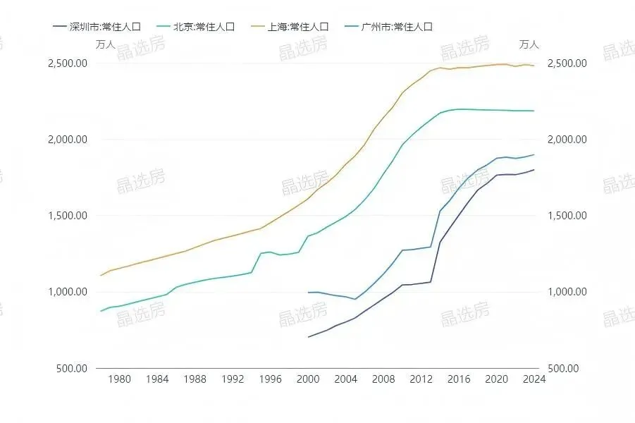 中国一线城市常住人口走势