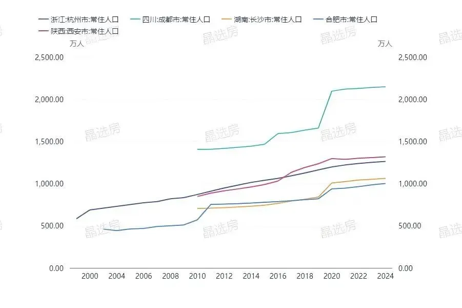 第二梯队是强二线城市。杭州、成都、长沙、合肥、西安等城市,凭借扎实的产业基础和友好的落户政策,成为人口争夺战的赢家。