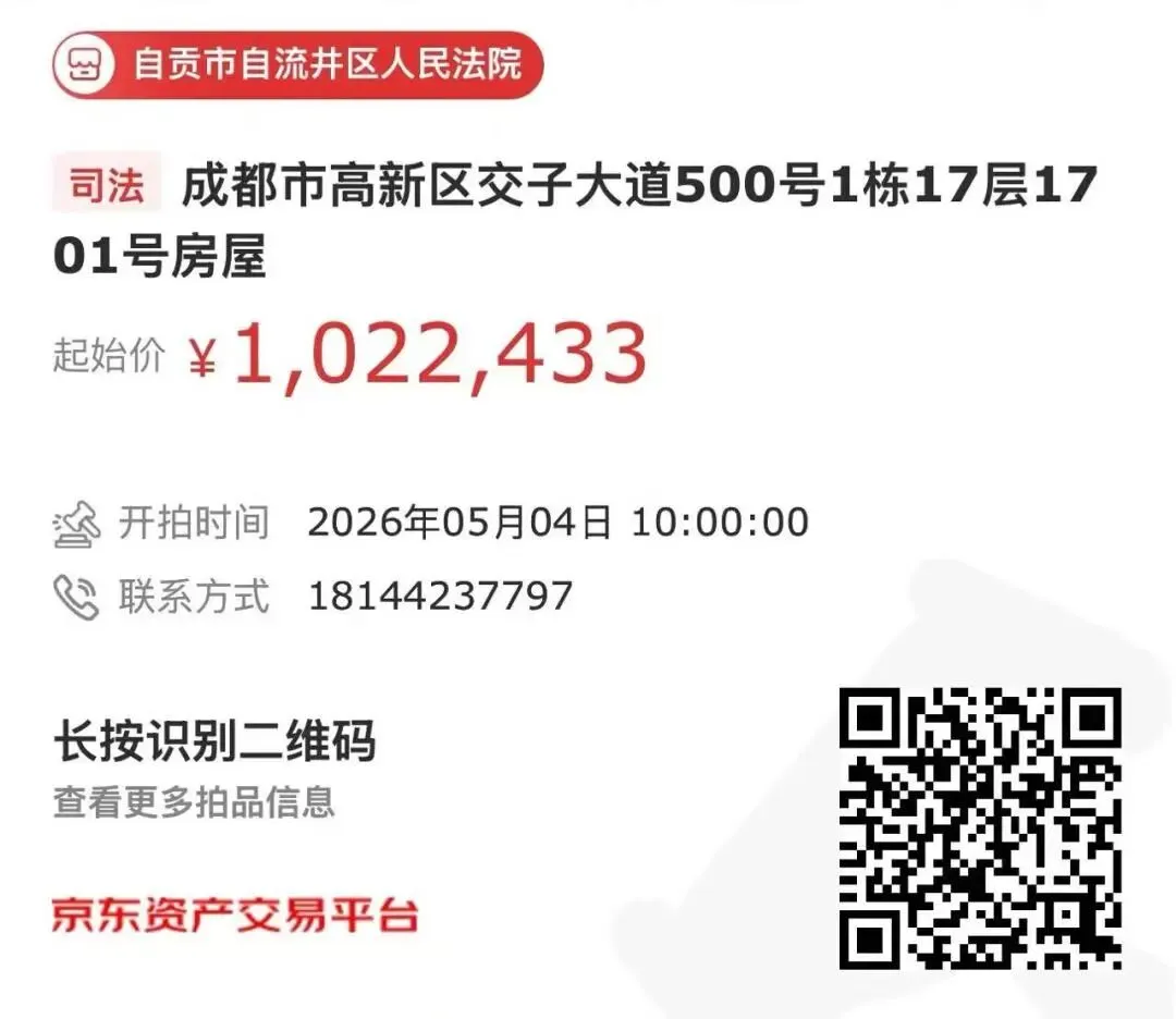 2、拍卖时间:2026年5月4日10时至2026年5月5日10时止(延时除外)