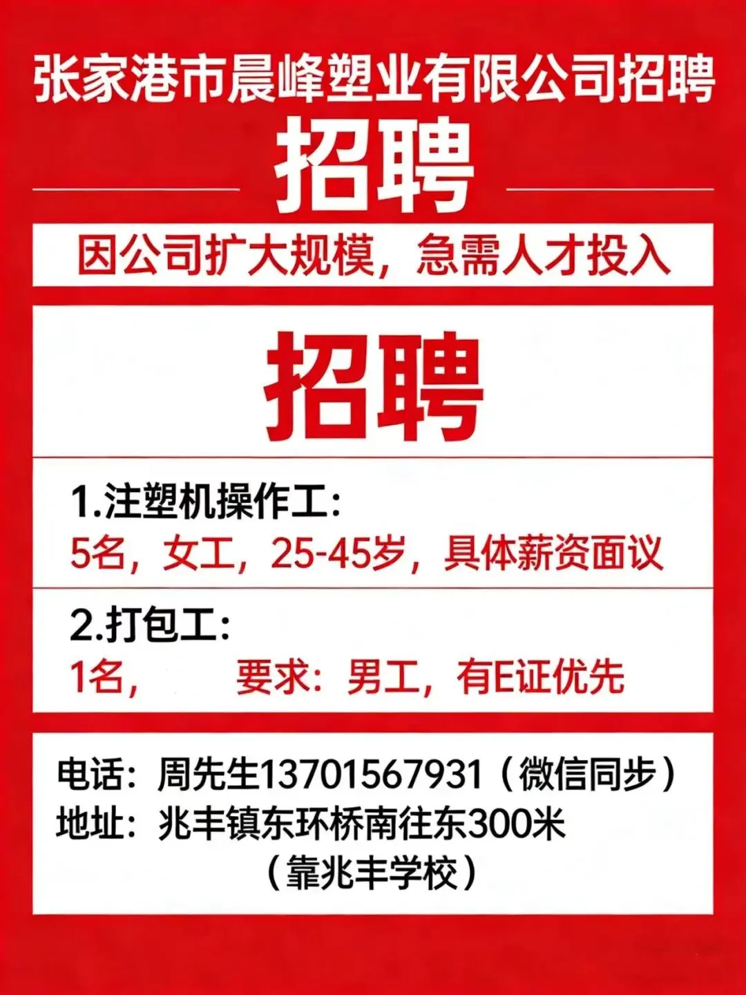 本公司专业生产塑料机械,现应公司业务发展需要,现招聘以下人员: