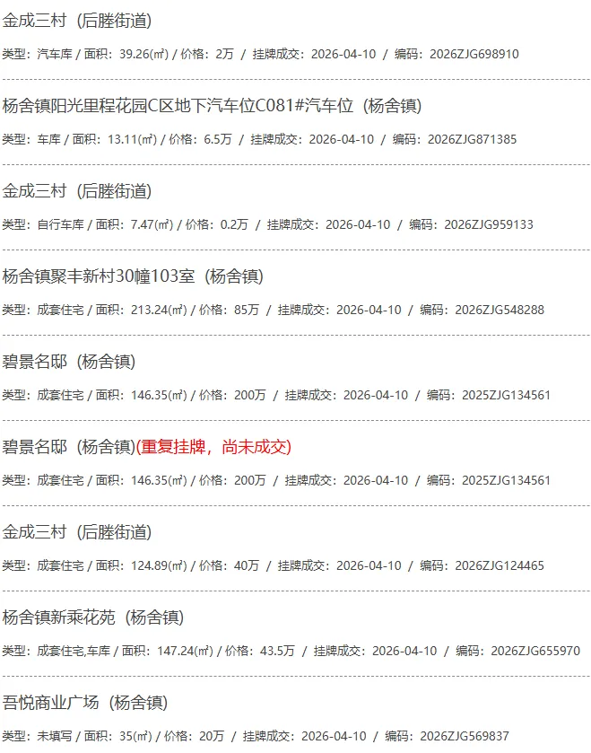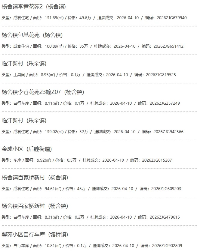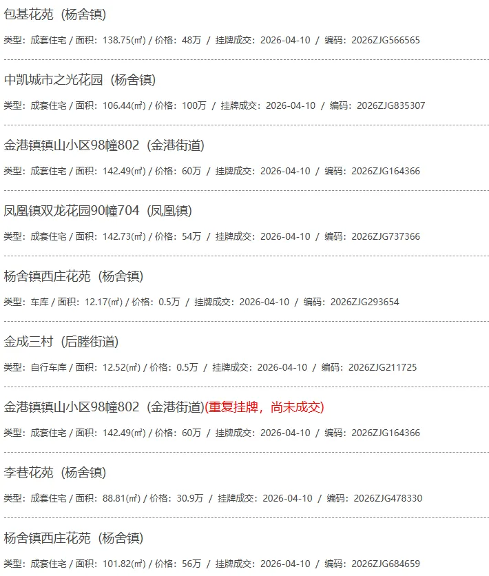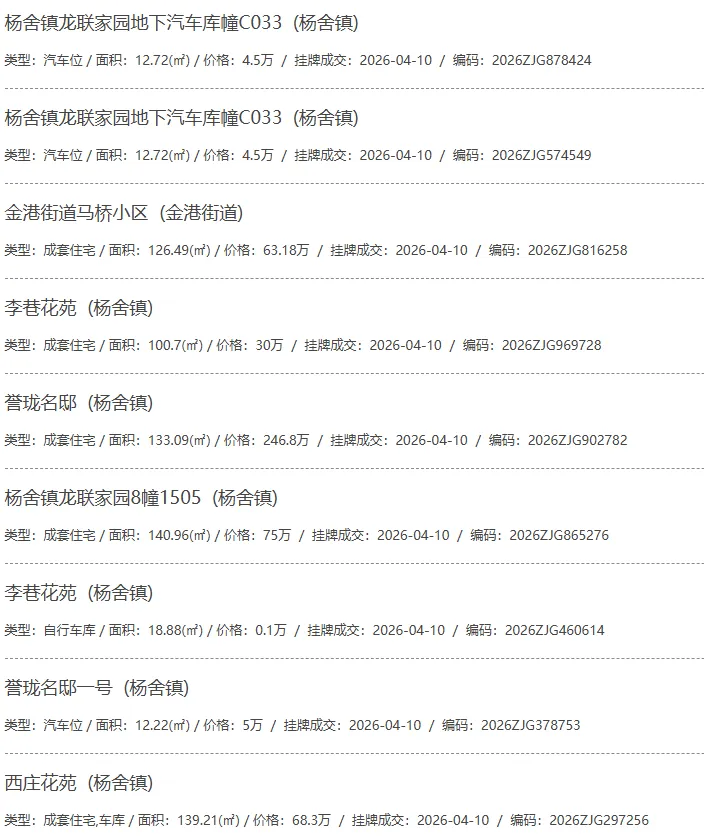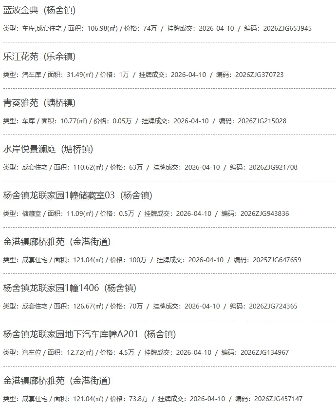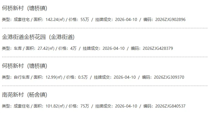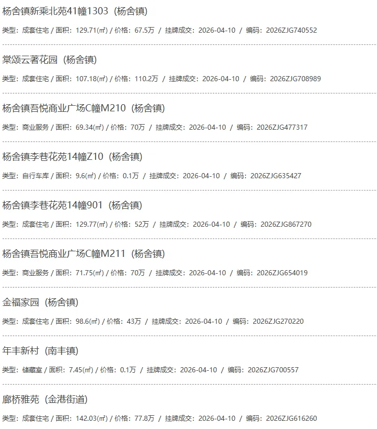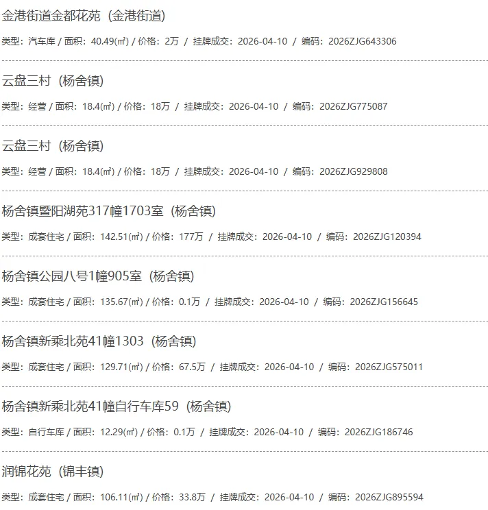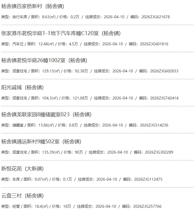 根据张家港房产网(www.zjgzf.cn)整理,(2026-04-10至2026-04-10)总共97套二手房网签挂牌成交(含自行车库及汽车库),数据根据住建局官方网签平台整理,并已同步至各对应小区的成交明细,特别提醒:此处数据及各小区成交数据中凡标注(来自网签挂牌)的,均是根据政府网签挂牌系统整理,价格可能不准,请谨慎采信;并仅作为您买房卖房的参考而非决定依据。以下为数据明细: