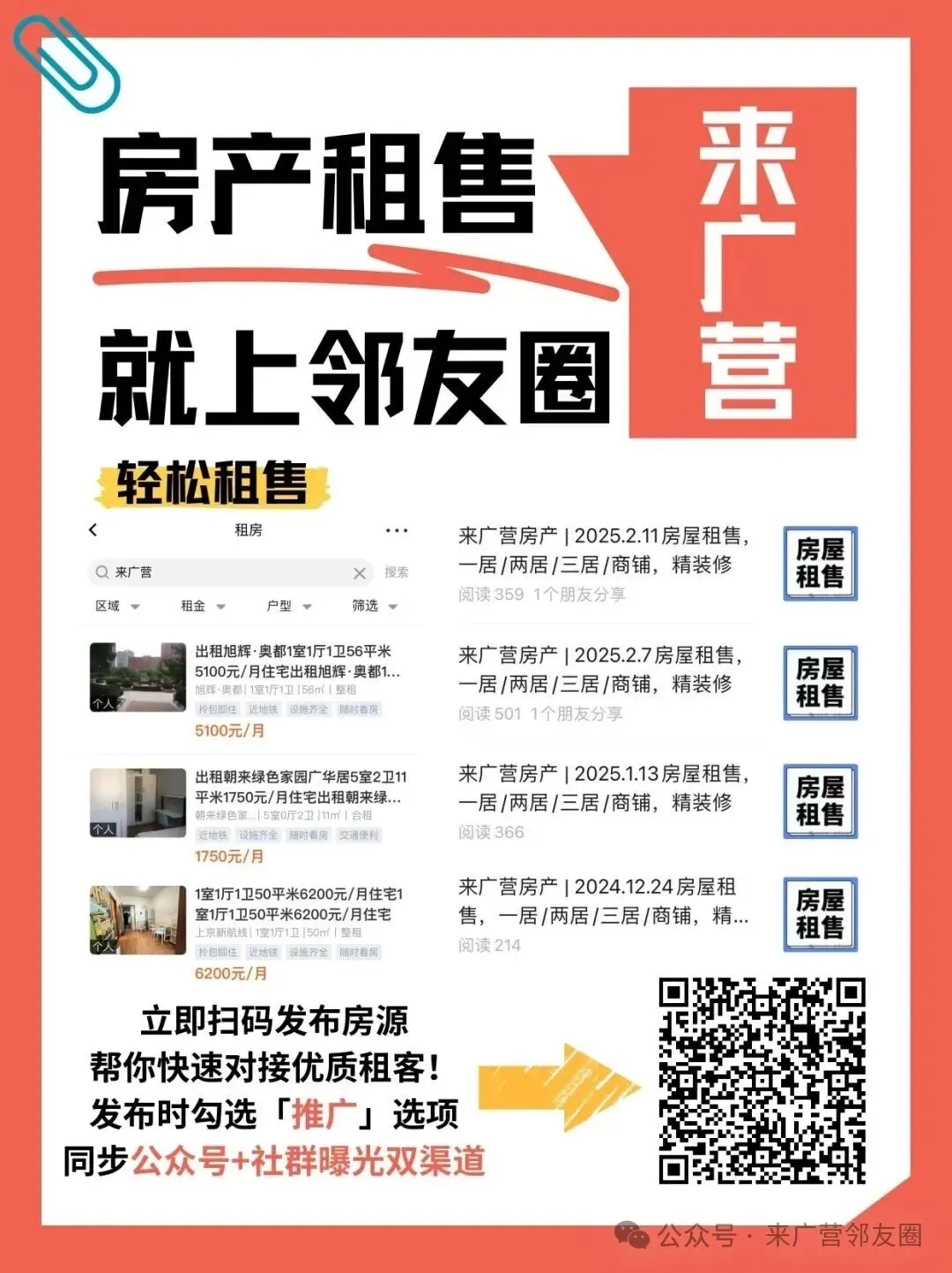 来广营房屋出租/售信息