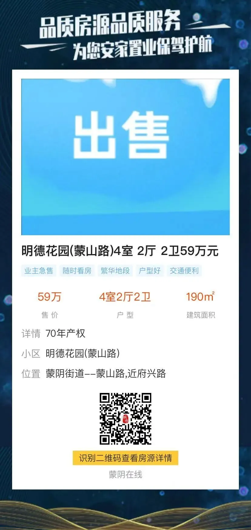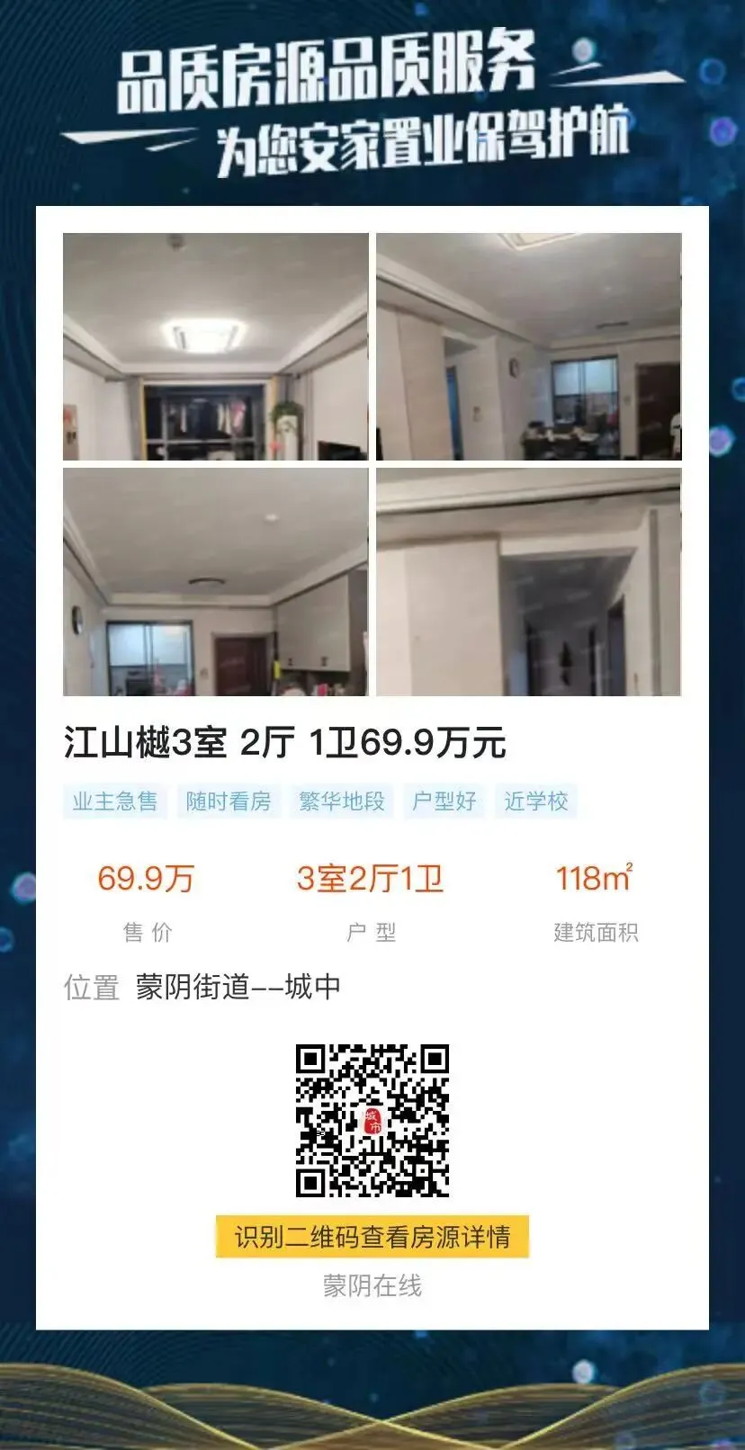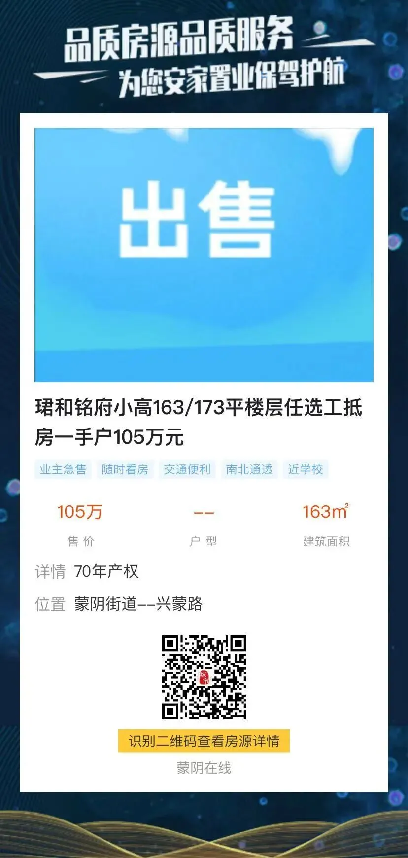 最近有在找二手房、出租、店铺转让信息吗?以下是部分房源,如果您在找房源信息可以看看!也可点击底部“阅读原文”即可进入蒙阴在线房产网,或直接向蒙阴在线公众微信号—蒙阴在线网络传媒发送关键词“房屋”,查看、发布各类房源信息